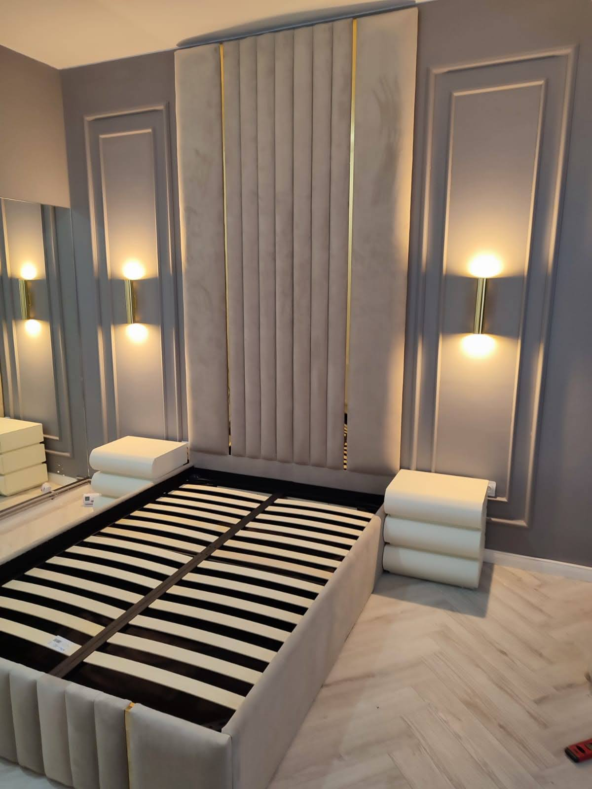 Patul Linnet reprezinta alegerea perfecta pentru amenajarea unui dormitor modern, al carui principal atribut este confortul perfect si pentru clipele mult dorite de relaxare. De dimensiuni generoase, patul este tapitat în catifea, material rezistent, care îi oferă o estetica deosebita. Este livrat cu somiera rabatabila cu spatiu pentru depozitare sub saltea. Se poate executa si pe alte culori.