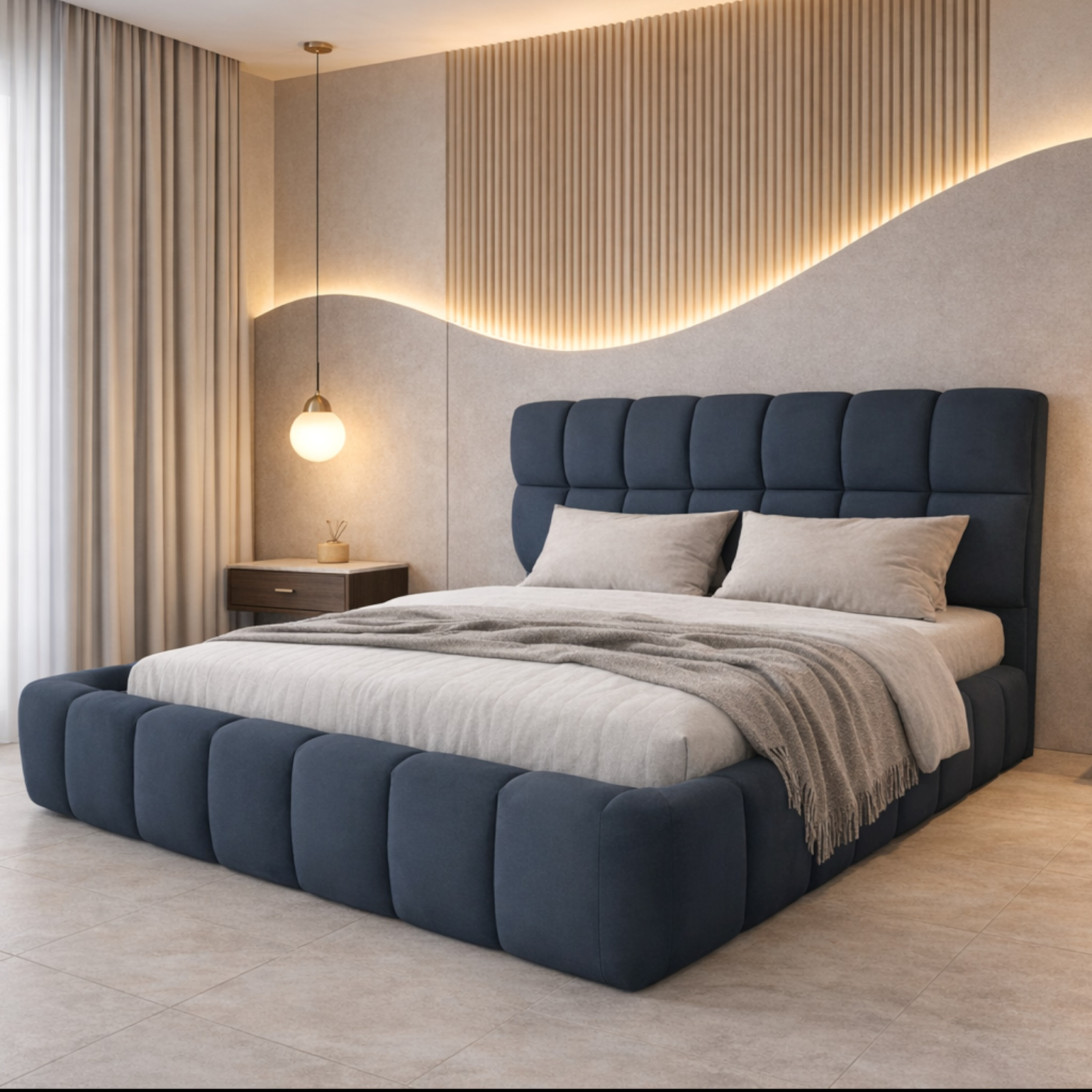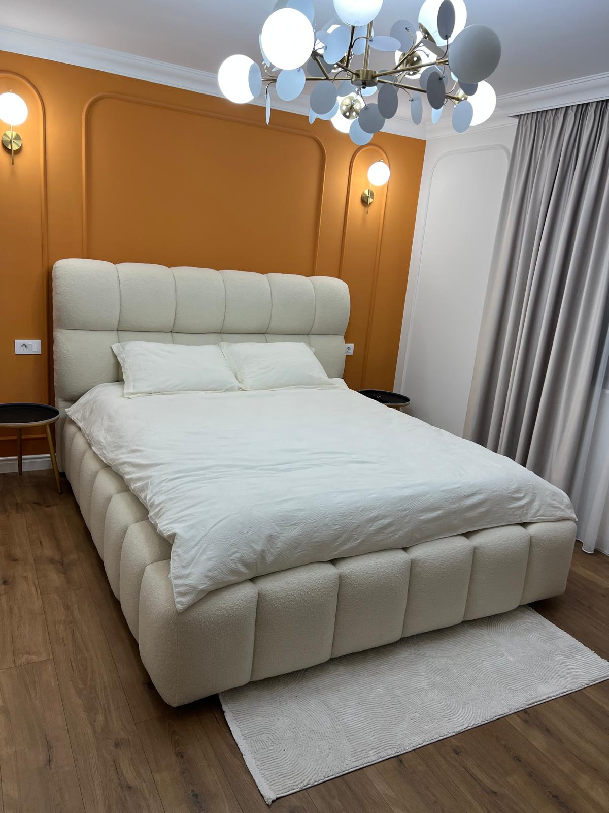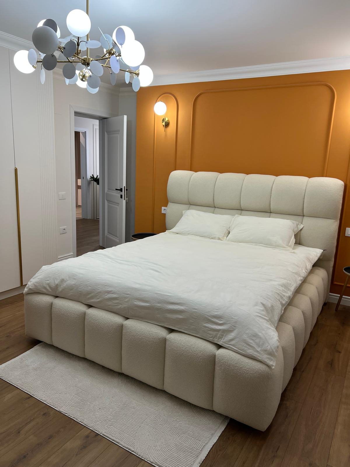 Patul Velare ideal pentru familiile care pretuiesc confortul si calitatea. Cu o tablie înalta și moale, perfecta pentru momentele în care copiii sar în pat dimineata sau serile de citit povesti. Tapitat într-un material placut la atingere si ușor de întretinut, acest pat devine centrul fiecarei seri în familie. Suportul de saltea cu rama metalica si lamele de fag mentine salteaua ferma si durabila în timp. Fie ca te relaxezi singur sau alaturi de cei dragi, acest pat ofera spatiu, stil și siguranta. Alege-l pentru momente de calitate acasa, într-un dormitor care spune o poveste calda.