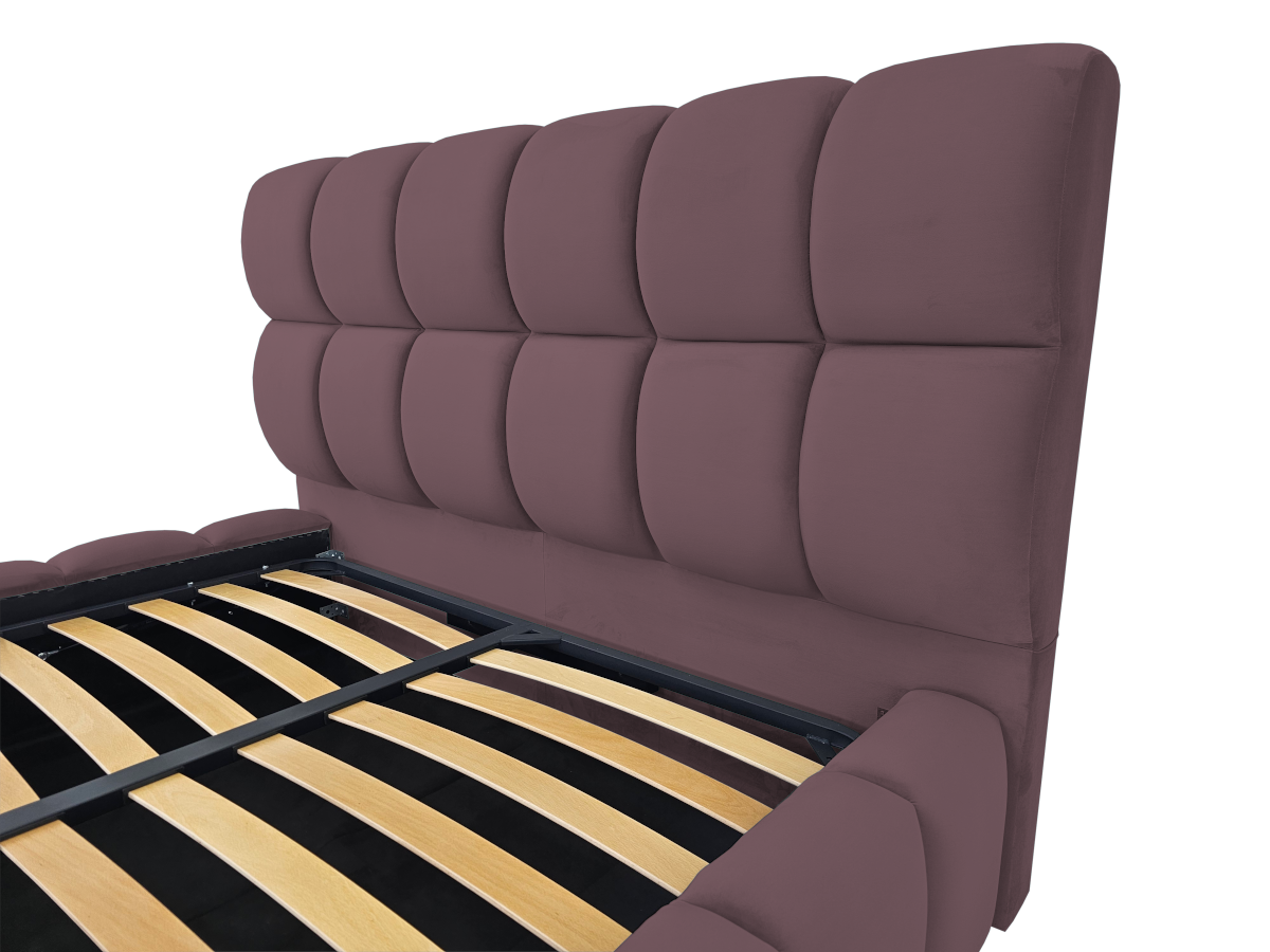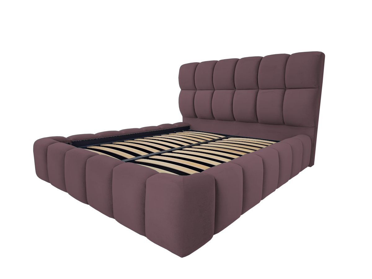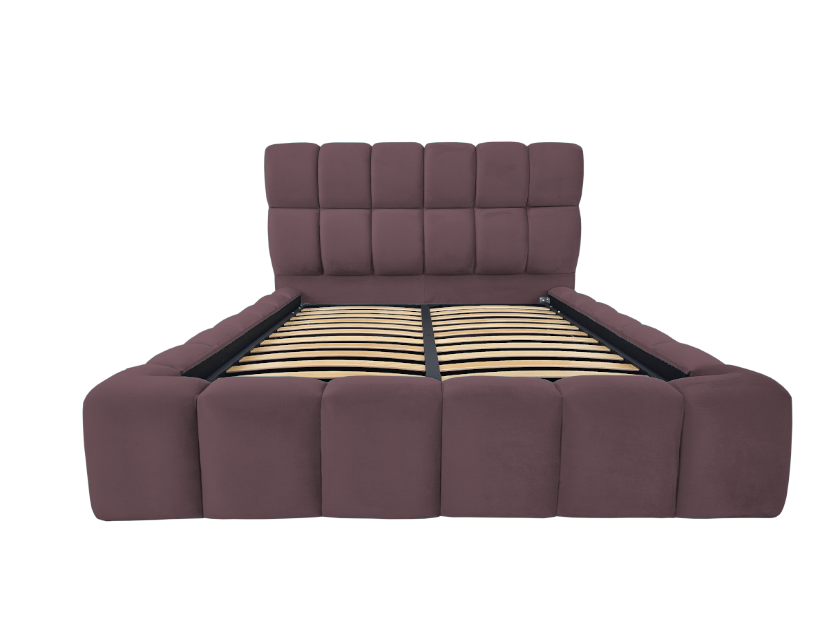 Pat tapitat Velare ,140x200cm,somiera metalica rabatabila,spatiu depozitare,mov deschis