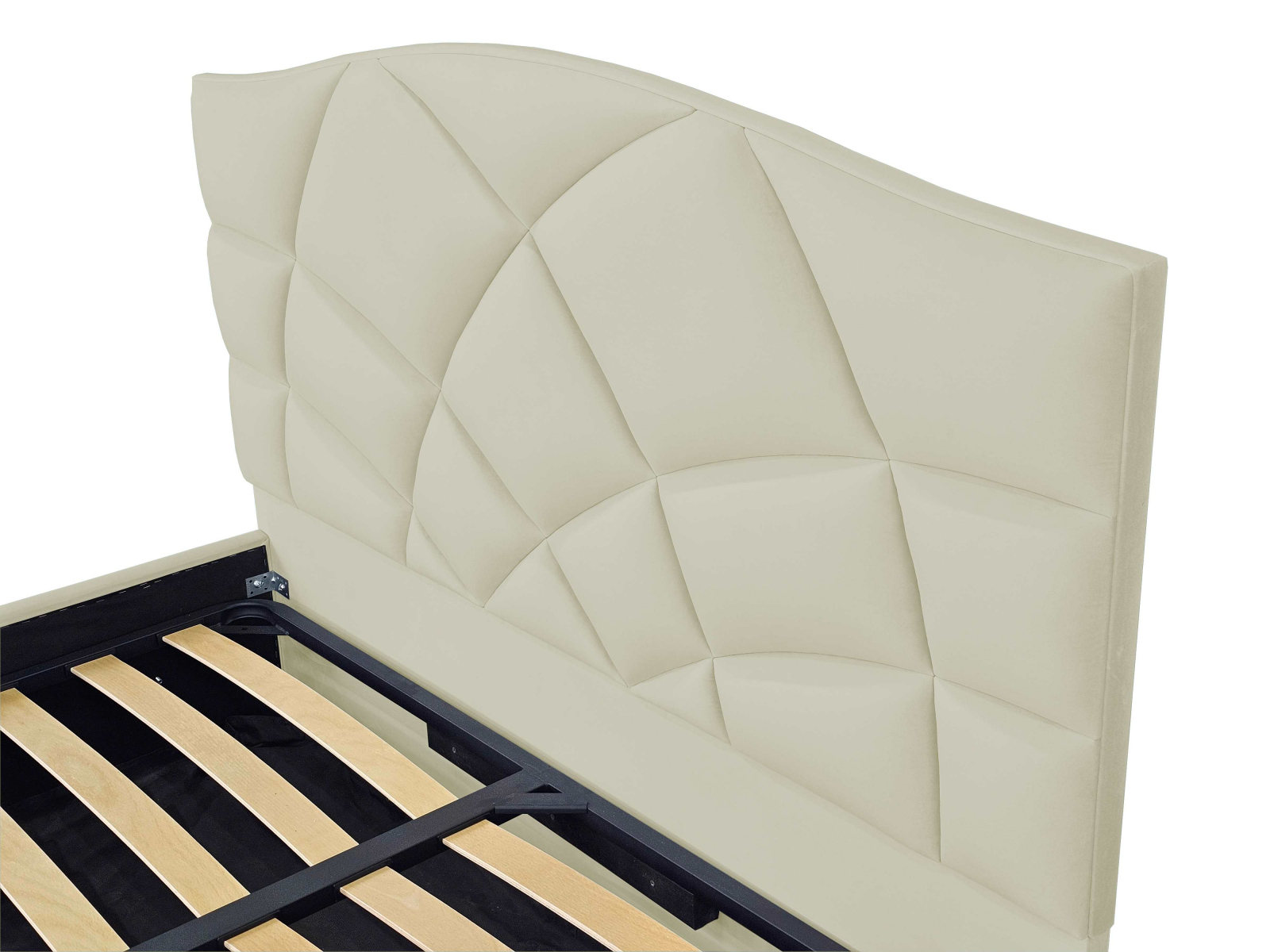 Patul tapitat Venus  adaugă o notă de căldură și eleganțăt .Materialul tapițeriei este  din catifea, plăcut la atingere.Acest pat este potrivit pentru un dormitor elegant și confortabil.Detaliile geometrice ale panourilor sunt subtile, dar adaugă un aspect sofisticat.Capul de pat este înalt și curbat, cu o formă care amintește de o arcadă.Este prevazut cu somiera rabatabila si spatiu pentru depozitare.