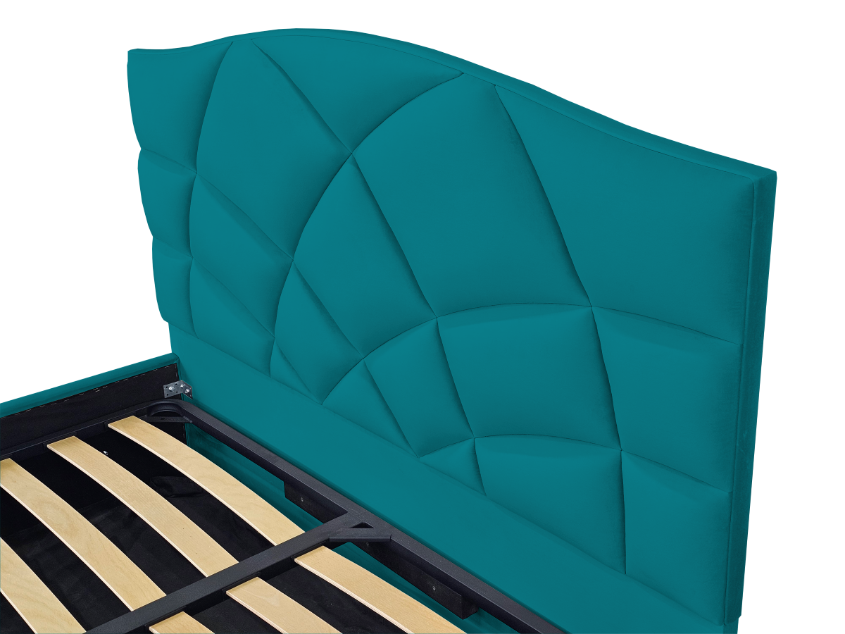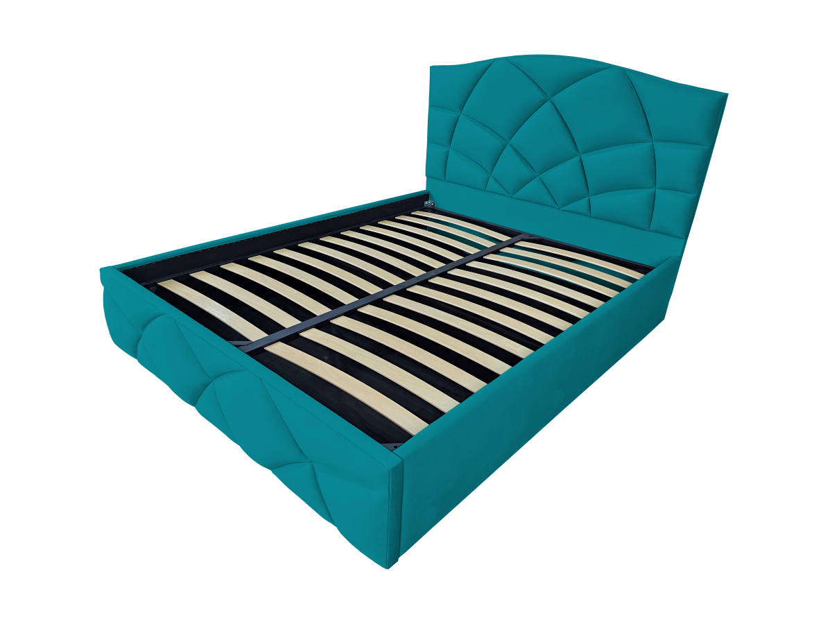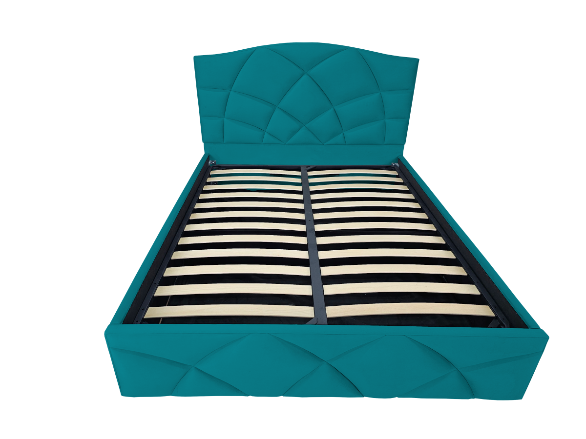 Pat tapitat Venus ,120x200cm,somiera metalica rabatabila,spatiu depozitare,albastru azur