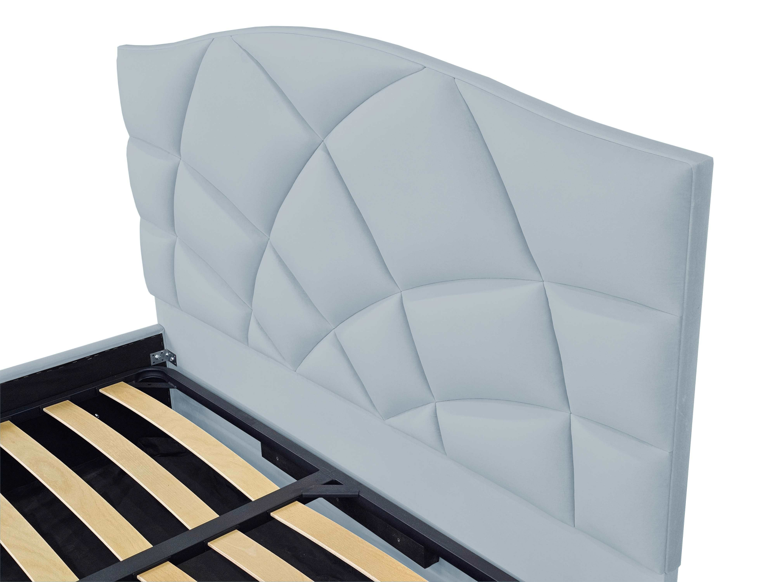 Patul tapitat Venus  adaugă o notă de căldură și eleganțăt .Materialul tapițeriei este  din catifea, plăcut la atingere.Acest pat este potrivit pentru un dormitor elegant și confortabil.Detaliile geometrice ale panourilor sunt subtile, dar adaugă un aspect sofisticat.Capul de pat este înalt și curbat, cu o formă care amintește de o arcadă.Este prevazut cu somiera rabatabila si spatiu pentru depozitare.