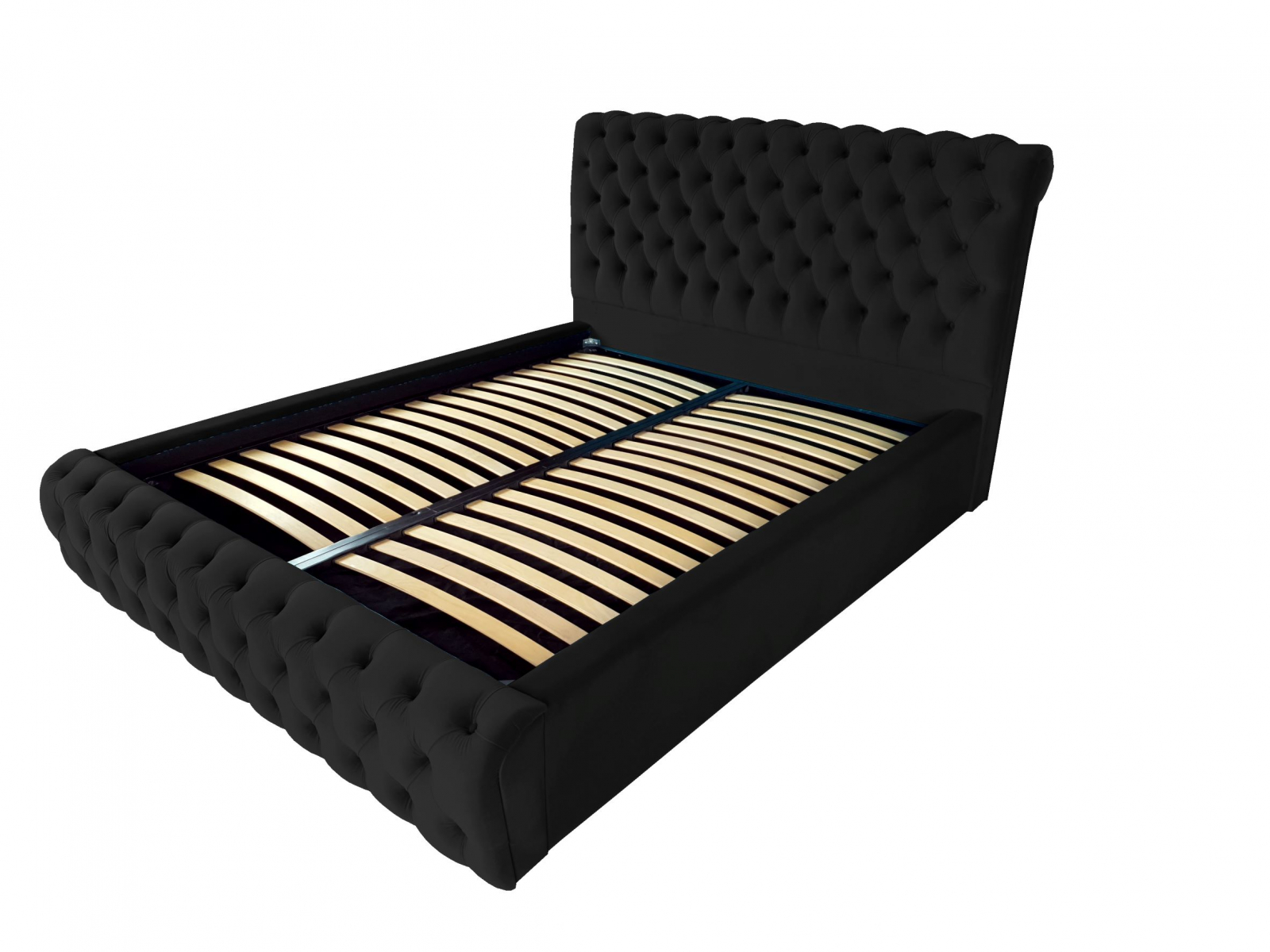 Veti fi captivat de aspectul sau unic și elegant. Rama patului este acoperita cu o tesatura moale catifelata. Un model de pat in stilul Chesterfield, tapitat in catifele moi si culori vibrante, perfect pentru un dormitor elegant.  Este livrat cu somiera rabatabila cu spatiu pentru depozitare sub saltea.
