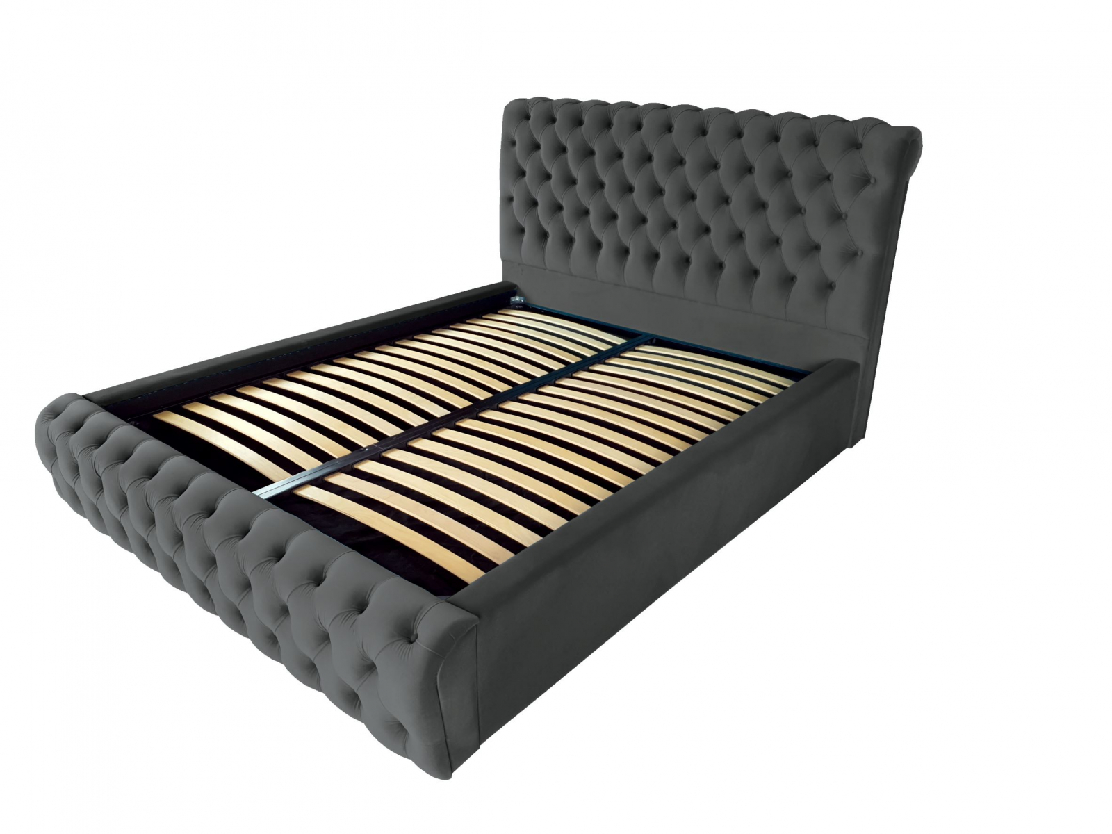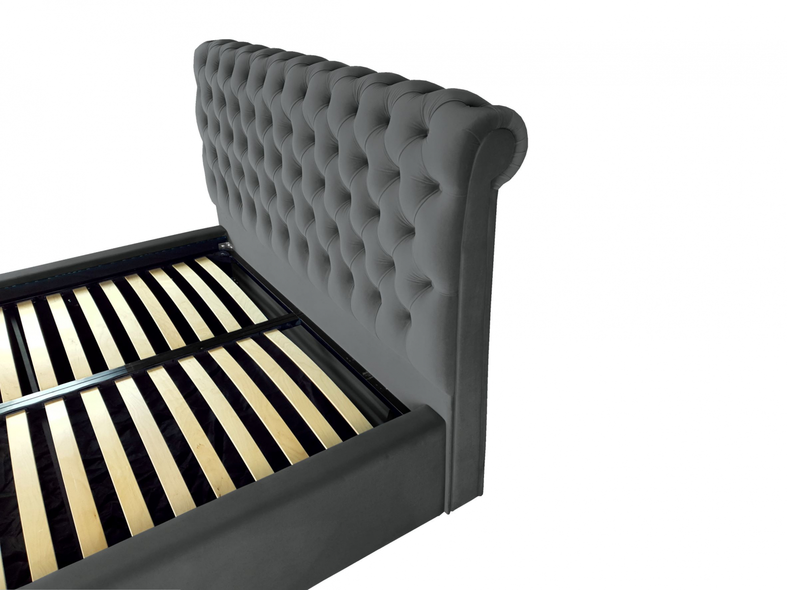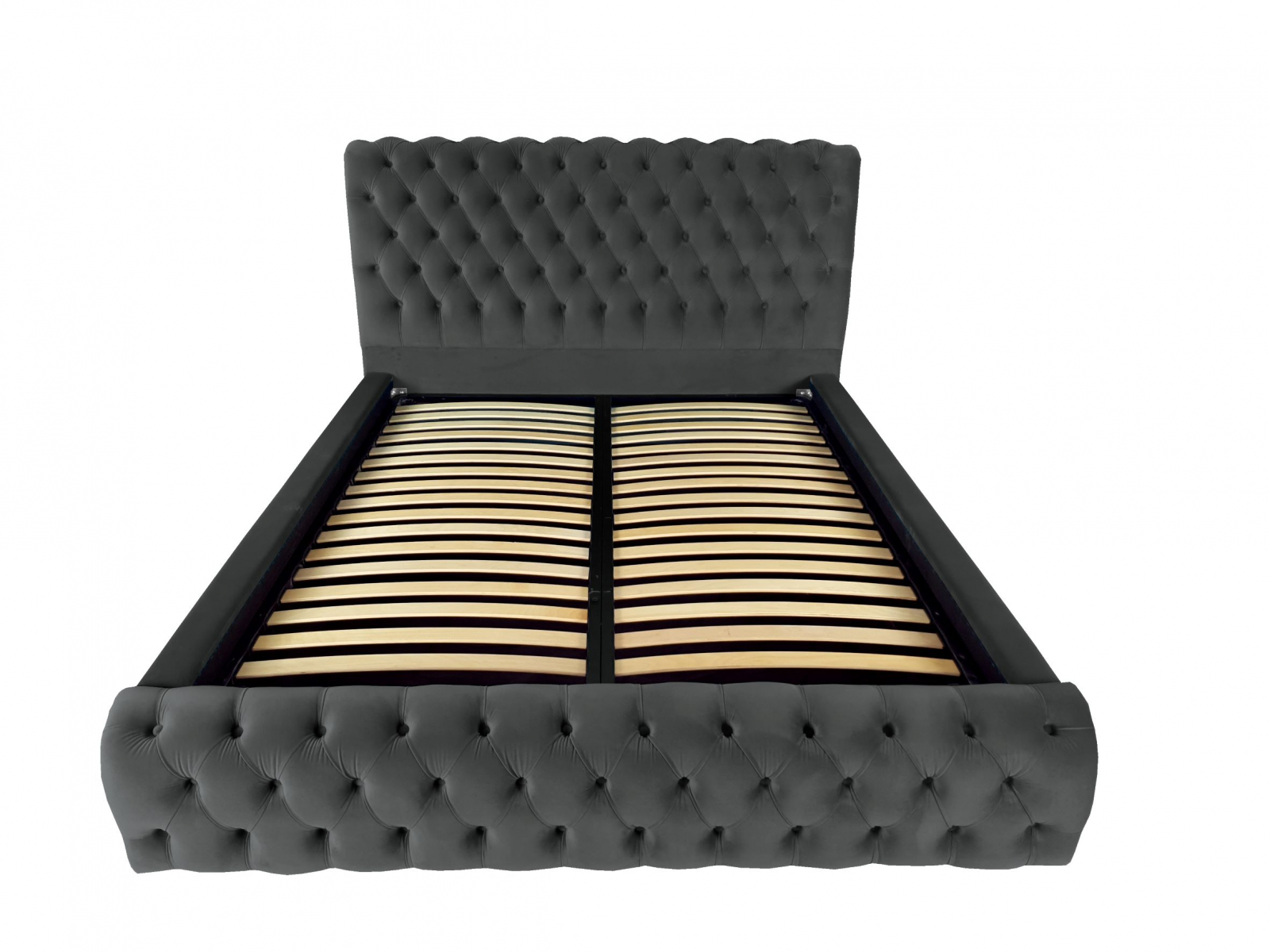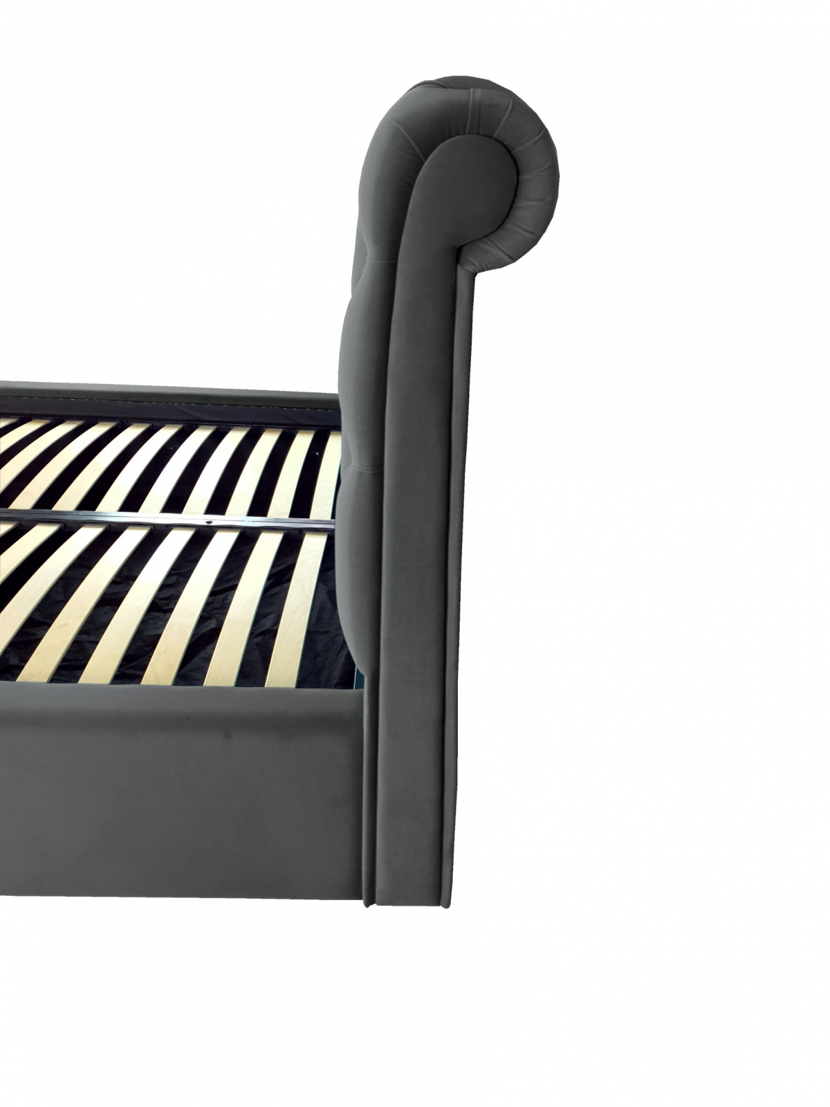 Veti fi captivat de aspectul sau unic și elegant. Rama patului este acoperita cu o tesatura moale catifelata. Un model de pat in stilul Chesterfield, tapitat in catifele moi si culori vibrante, perfect pentru un dormitor elegant.  Este livrat cu somiera rabatabila cu spatiu pentru depozitare sub saltea.