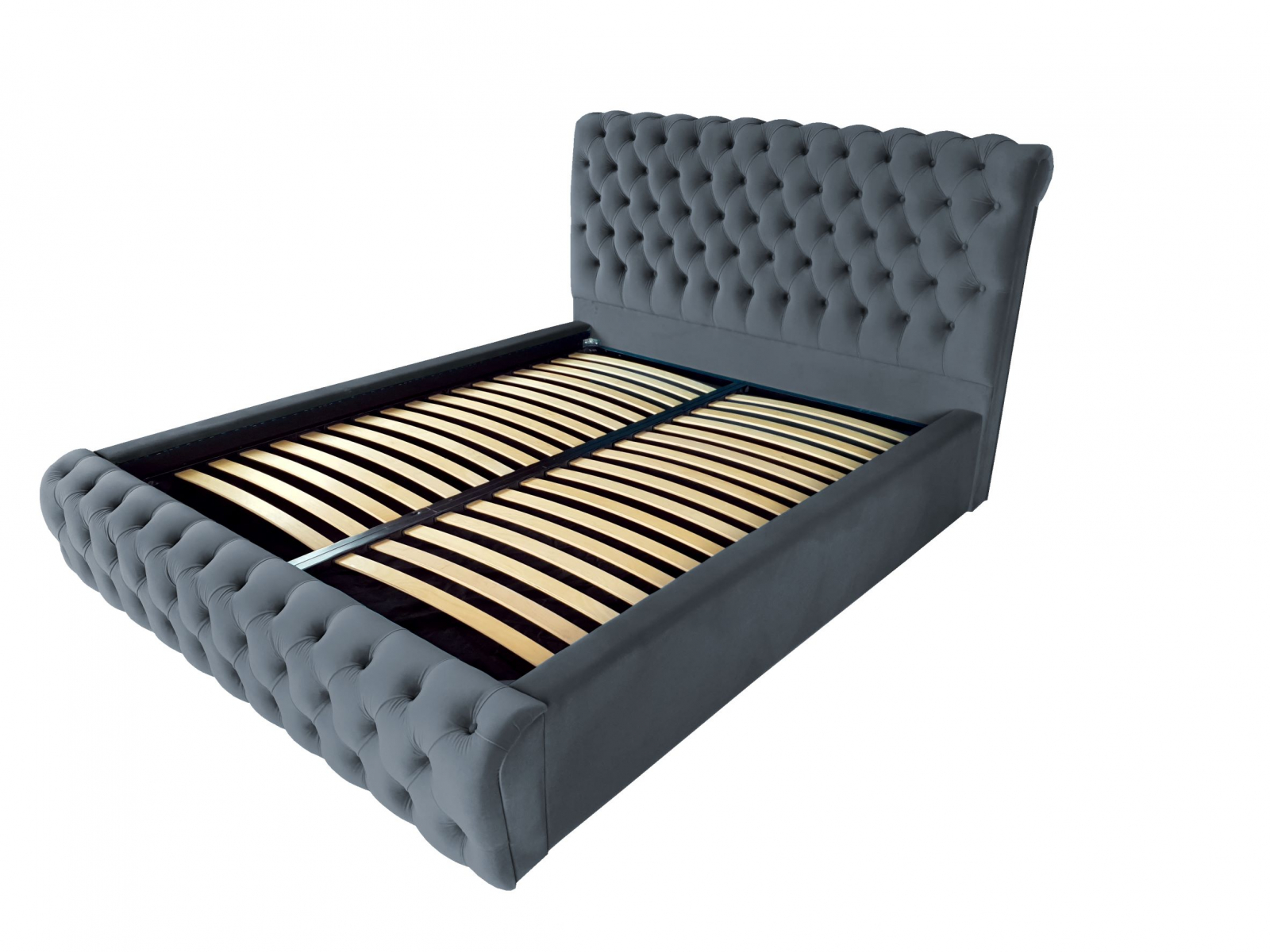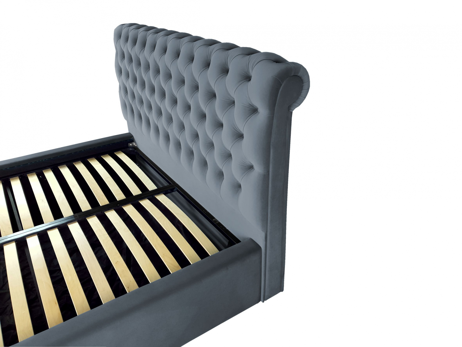 Veti fi captivat de aspectul sau unic și elegant. Rama patului este acoperita cu o tesatura moale catifelata. Un model de pat in stilul Chesterfield, tapitat in catifele moi si culori vibrante, perfect pentru un dormitor elegant. Este livrat cu somiera rabatabila cu spatiu pentru depozitare sub saltea.