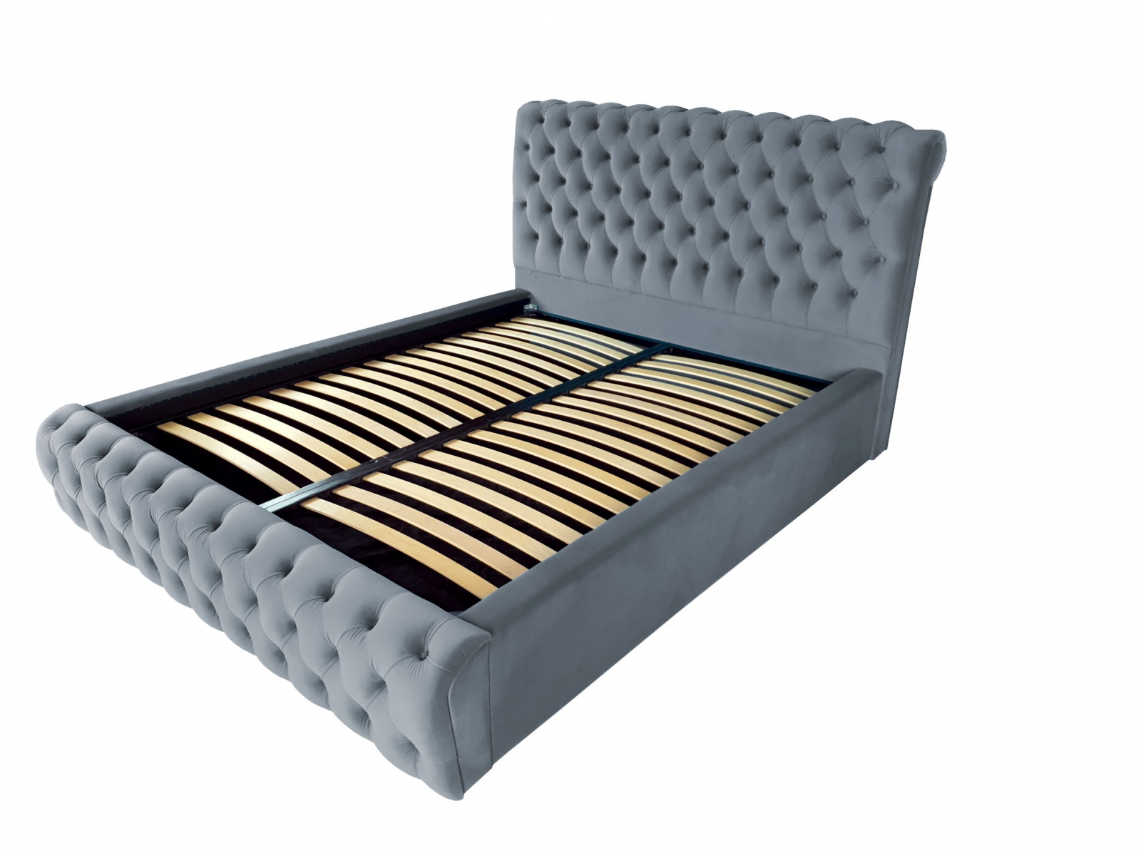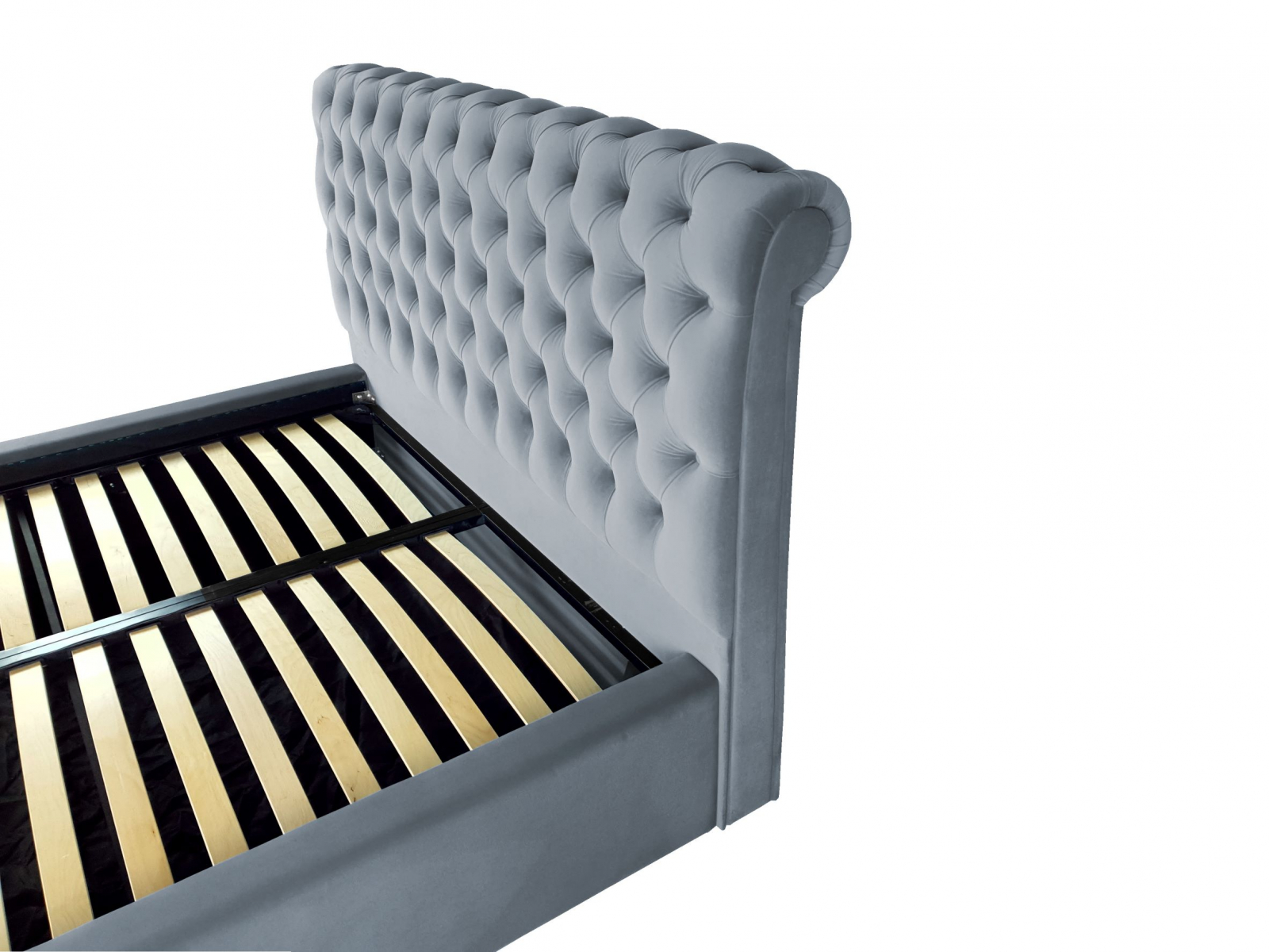 Veti fi captivat de aspectul sau unic și elegant. Rama patului este acoperita cu o tesatura moale catifelata. Un model de pat in stilul Chesterfield, tapitat in catifele moi si culori vibrante, perfect pentru un dormitor elegant.  Este livrat cu somiera rabatabila cu spatiu pentru depozitare sub saltea.