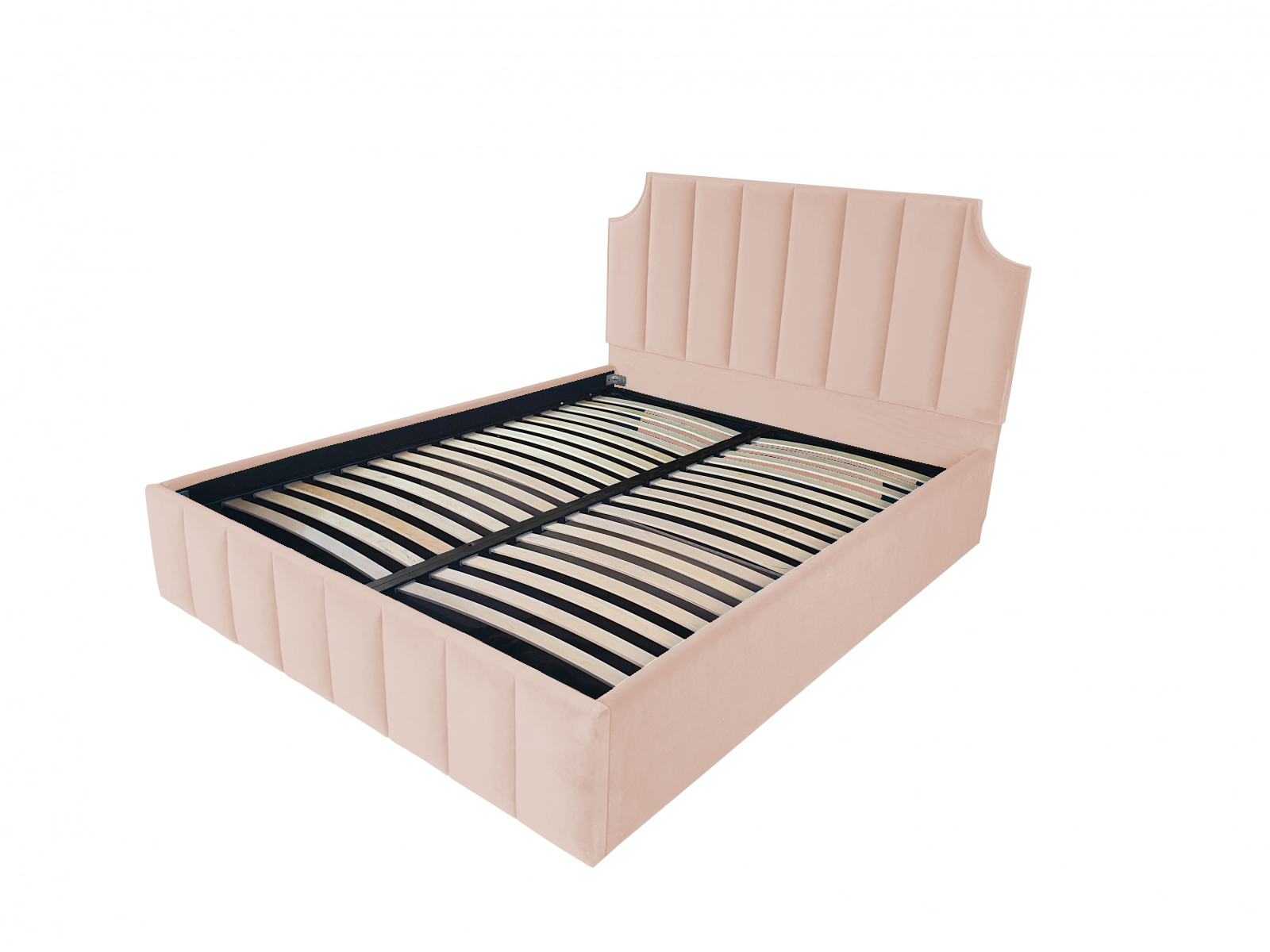 Pat tapitat Viena ,120x200cm,somiera metalica rabatabila,spatiu depozitare,roz pal
