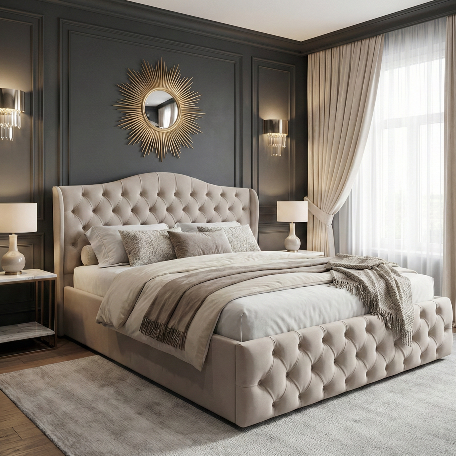 Pat tapitat Betty fabricat in Romania. Patul Betty reprezinta alegerea perfecta pentru amenajarea unui dormitor modern, al carui principal atribut este confortul perfect si pentru clipele mult dorite de relaxare. De dimensiuni generoase, patul este tapitat în catifea, material rezistent, care îi oferă o estetica deosebita. Este livrat cu somiera rabatabila cu spatiu pentru depozitare sub saltea. Se poate executa si pe alte culori.
