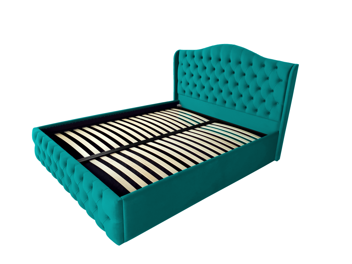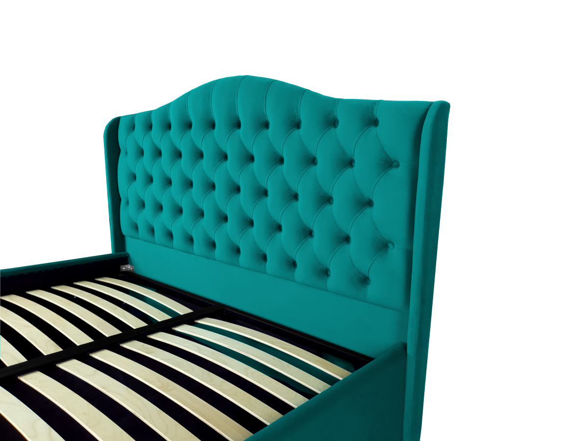 Pat tapitat Betty ,120x200cm,somiera metalica rabatabila,spatiu depozitare,turcoaz