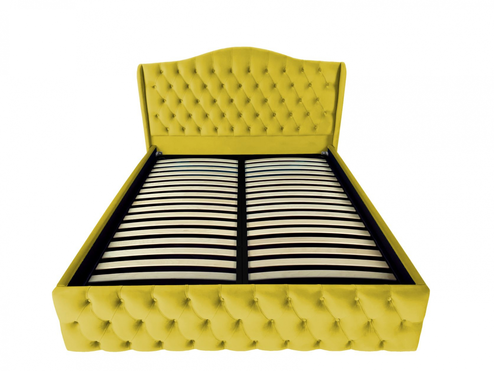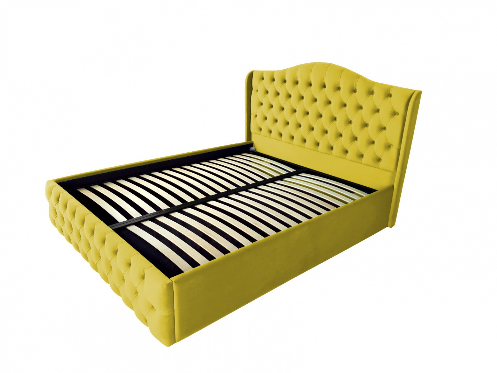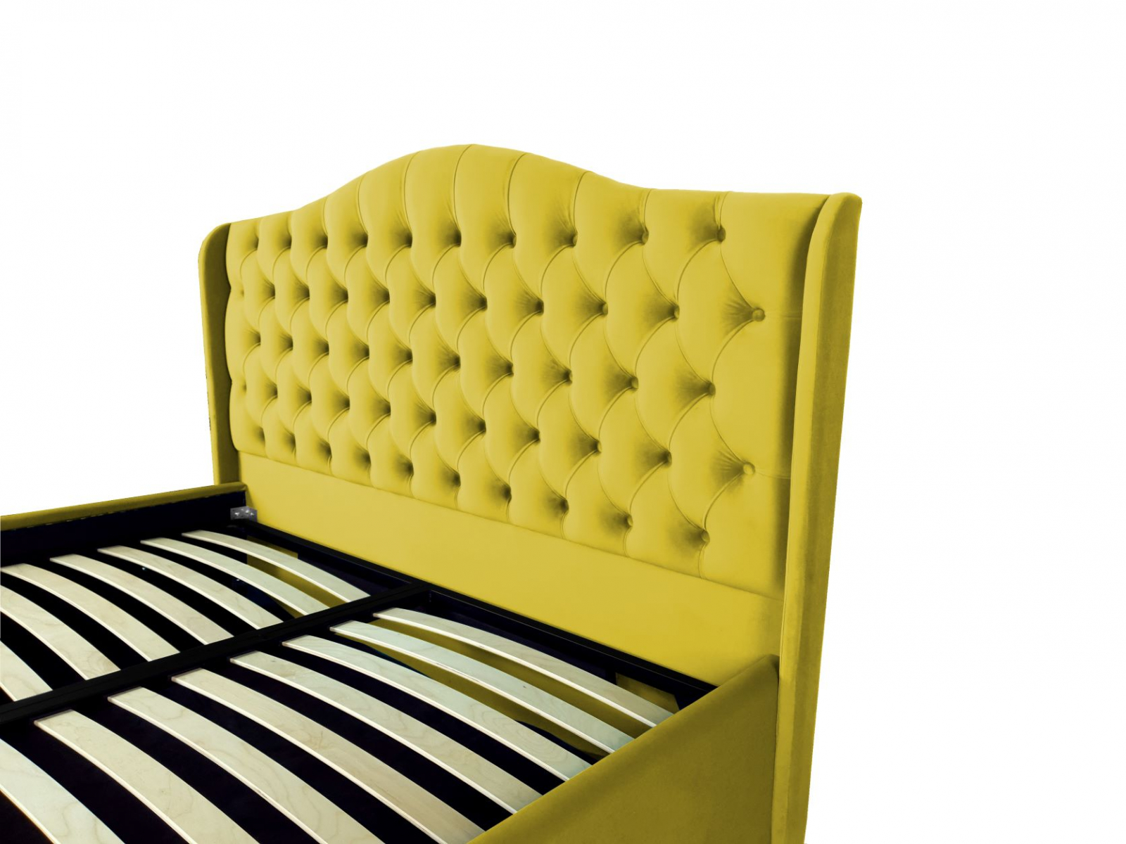 Pat tapitat Betty ,120x200cm,somiera metalica rabatabila,spatiu depozitare,mustar