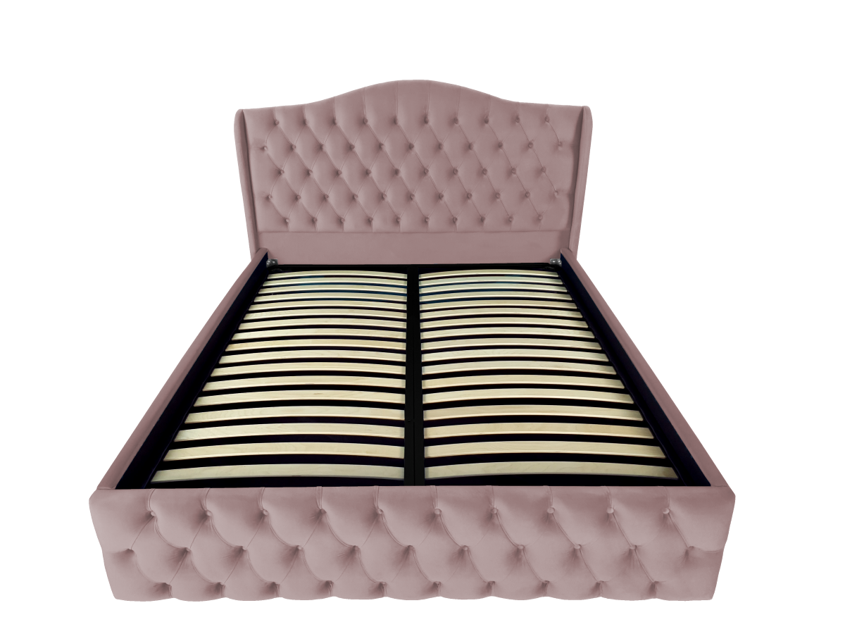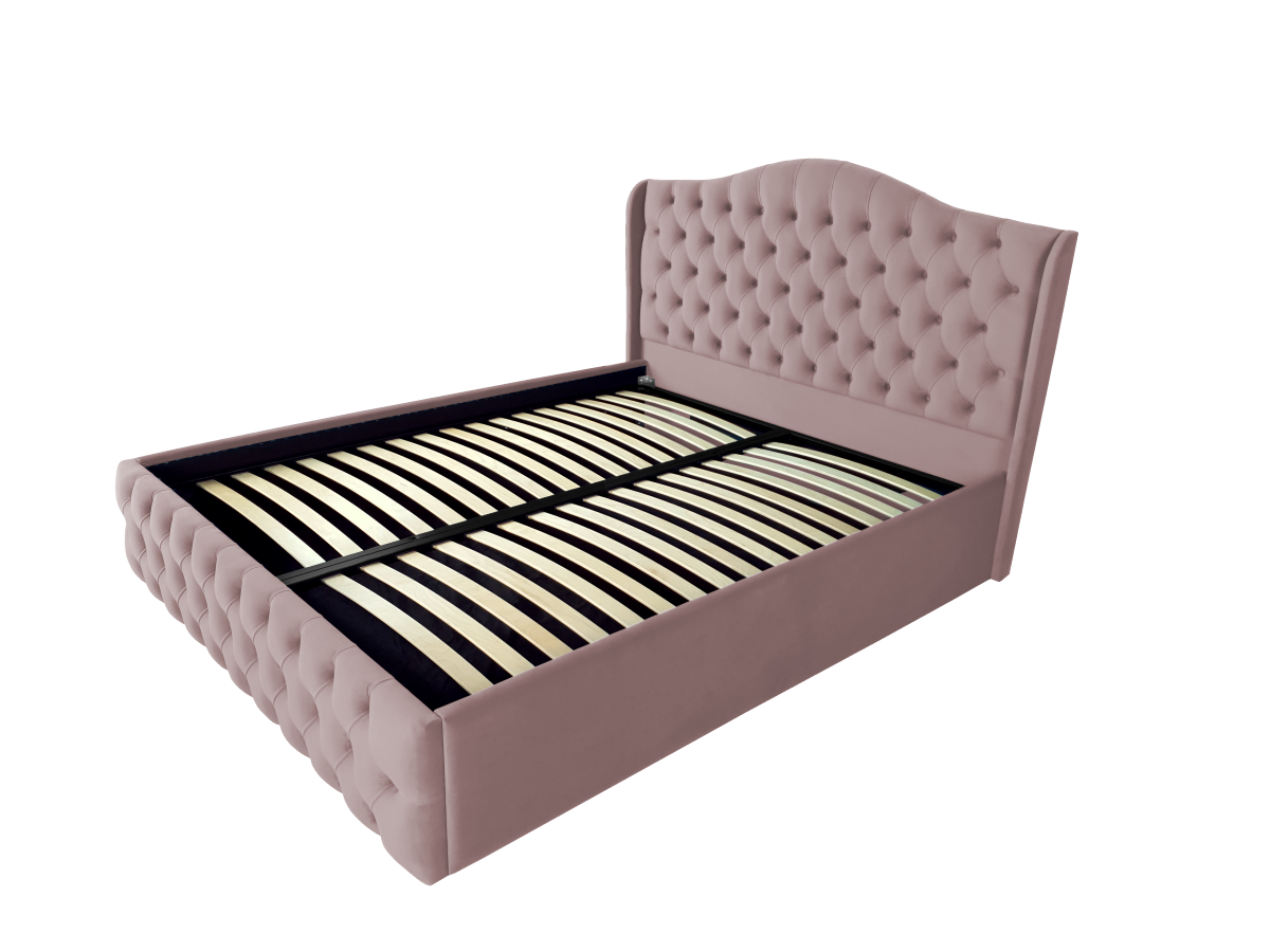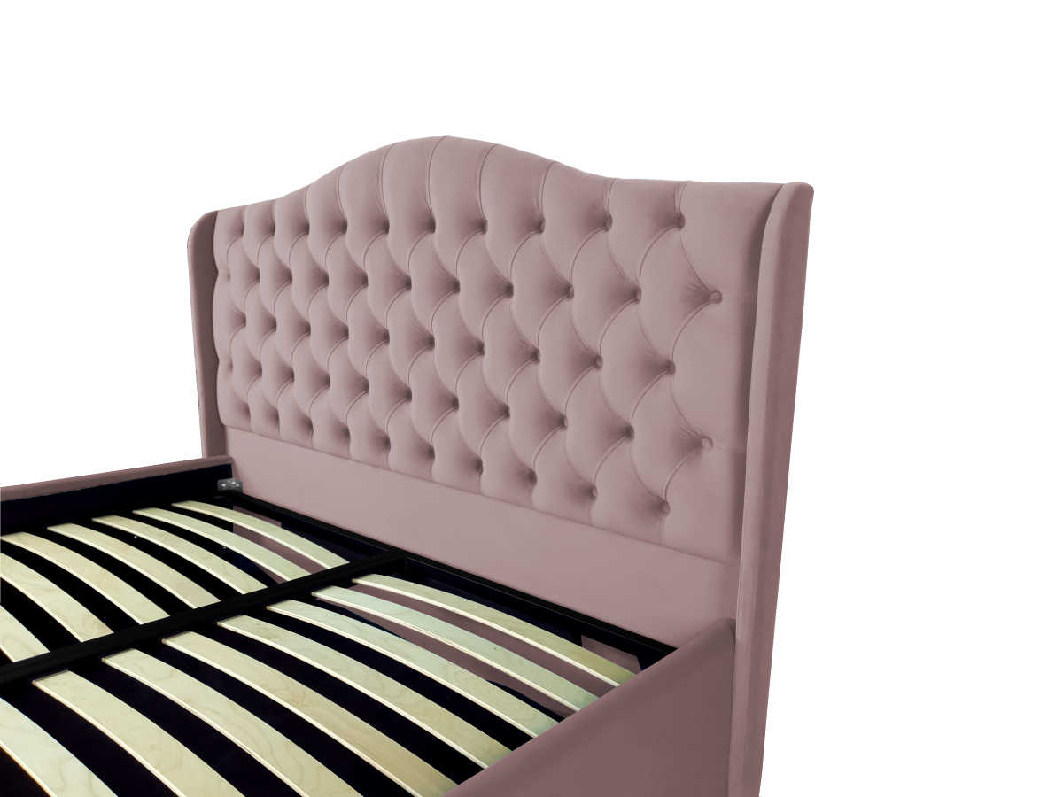 Pat tapitat Betty ,120x200cm,somiera metalica rabatabila,spatiu depozitare,roz prafuit