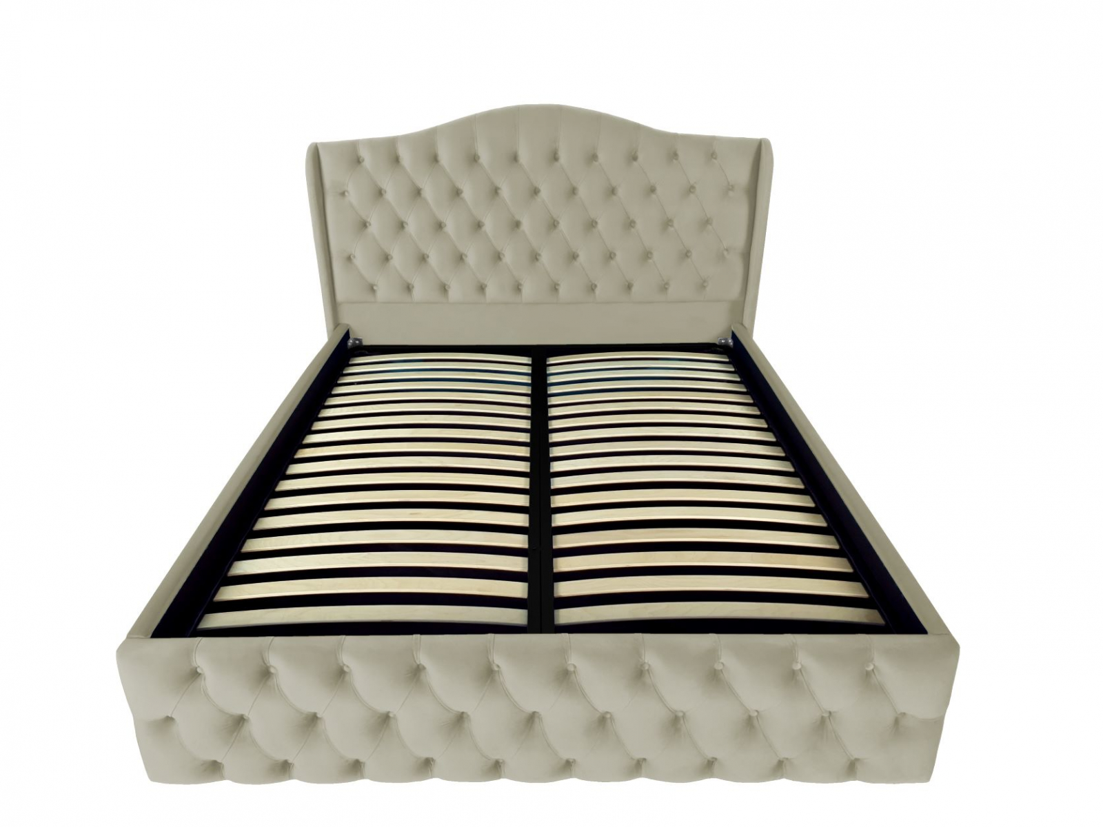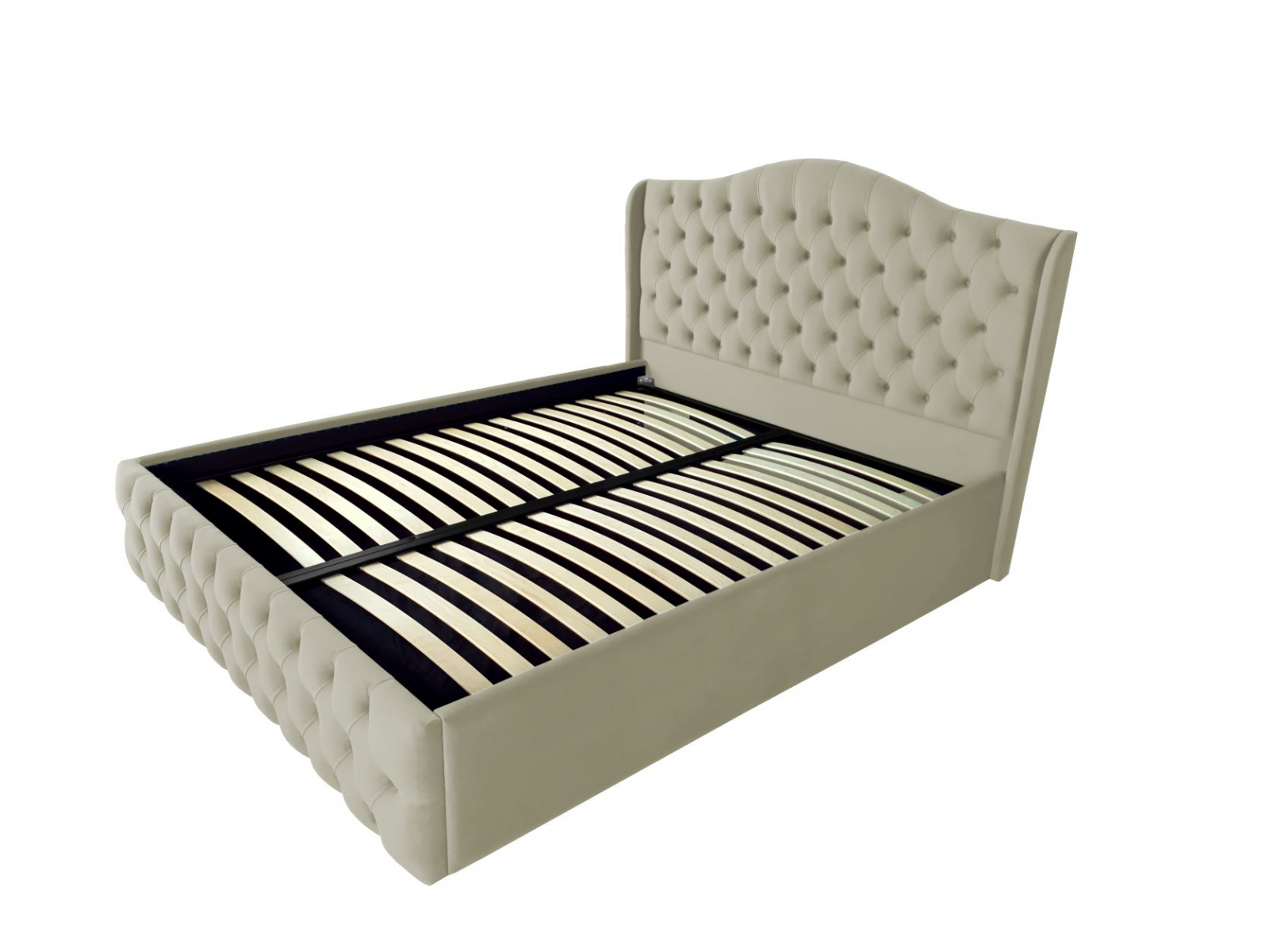 Pat tapitat Betty ,140x200cm,somiera metalica rabatabila,spatiu depozitare,bej nisip