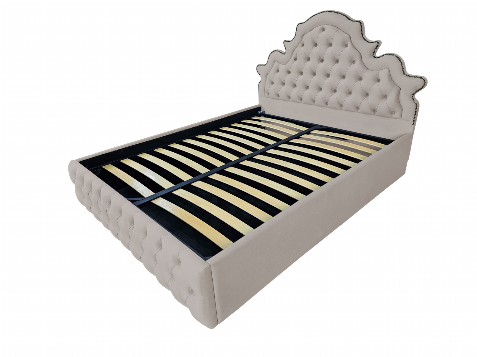 Pat tapitat Elise ,120x200cm,somiera metalica rabatabila,spatiu depozitare,capucino