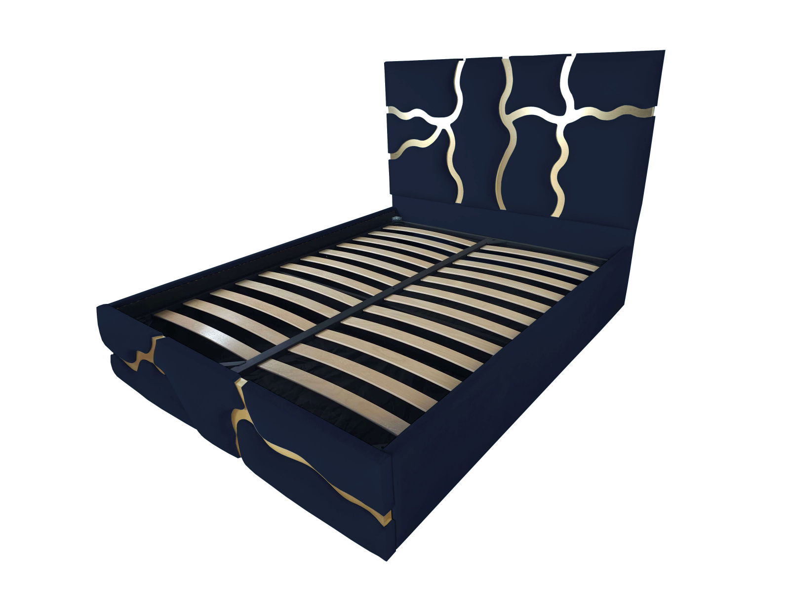 Pat tapitat Etna ,120x200cm,somiera metalica rabatabila,spatiu depozitare,bleumarin