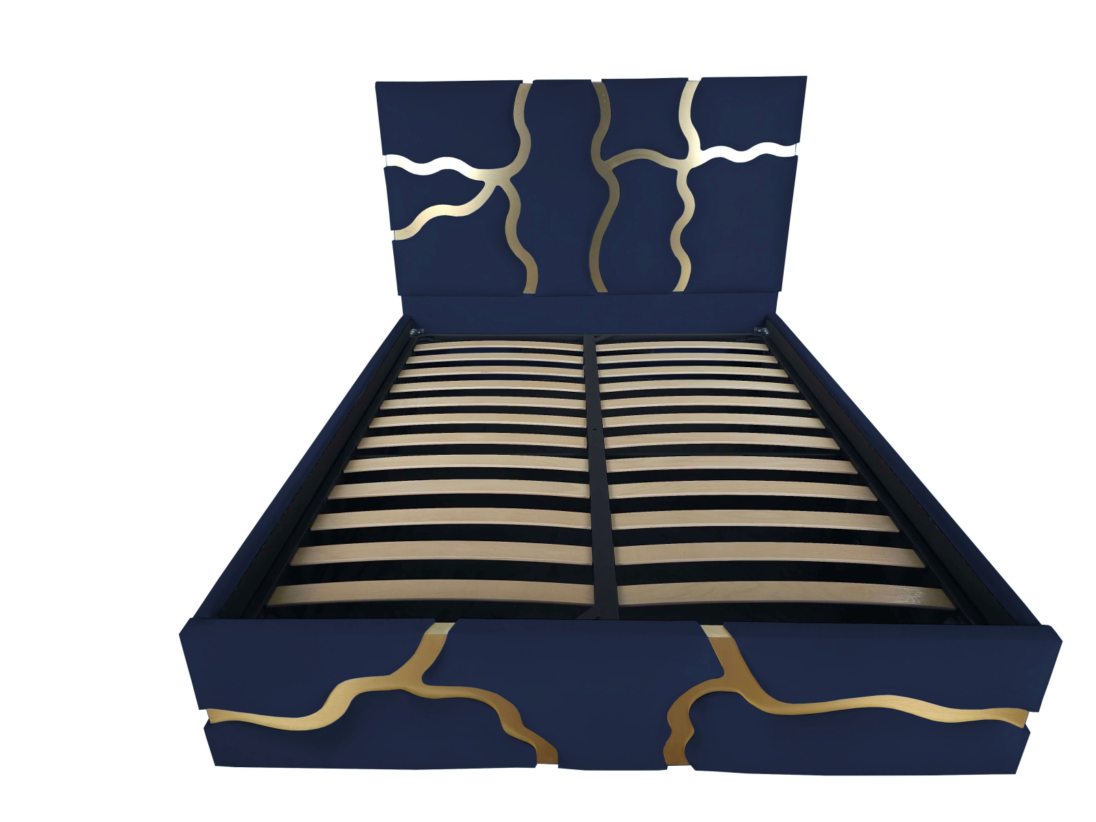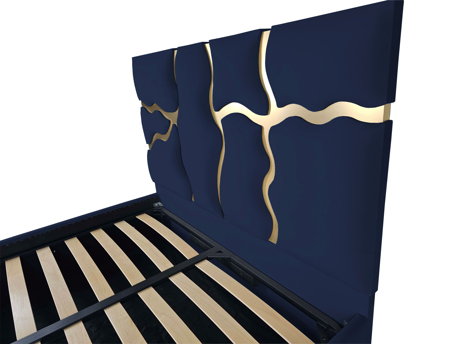 Patul Etna  este un pat tapitat ce incearca sa imite  urmele de lavă de culoare aurie. Este  o declarație de stil îndrăzneață și o piesă de mobilier care cu siguranță atrage atenția în orice cameră. Este o combinație de confort, funcționalitate și design artistic, care aduce un strop de aventură și mister în decorul casei dumneavoastră.Elementele  de culoare aurie sunt strălucitoare si  imită modul în care lava incandescentă strălucește în lumina soarelui.
