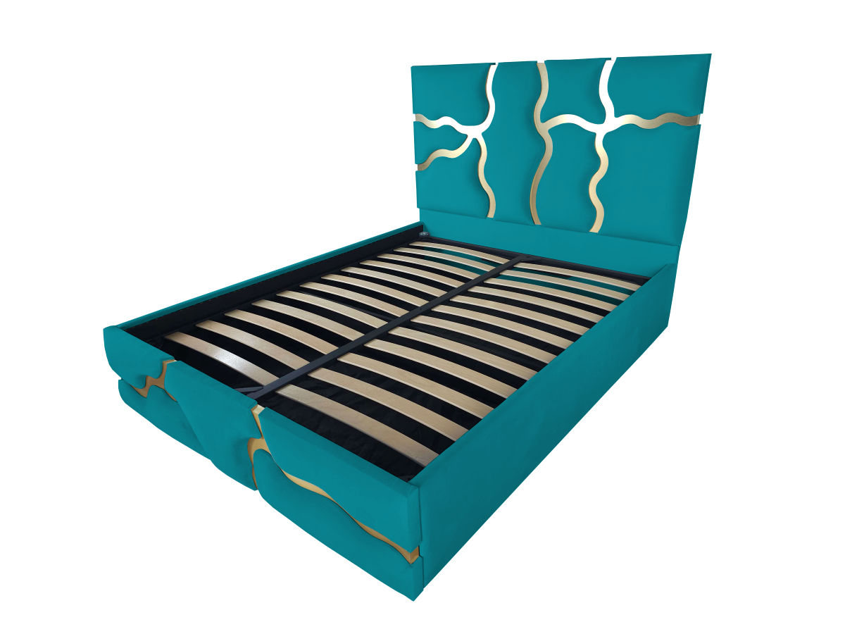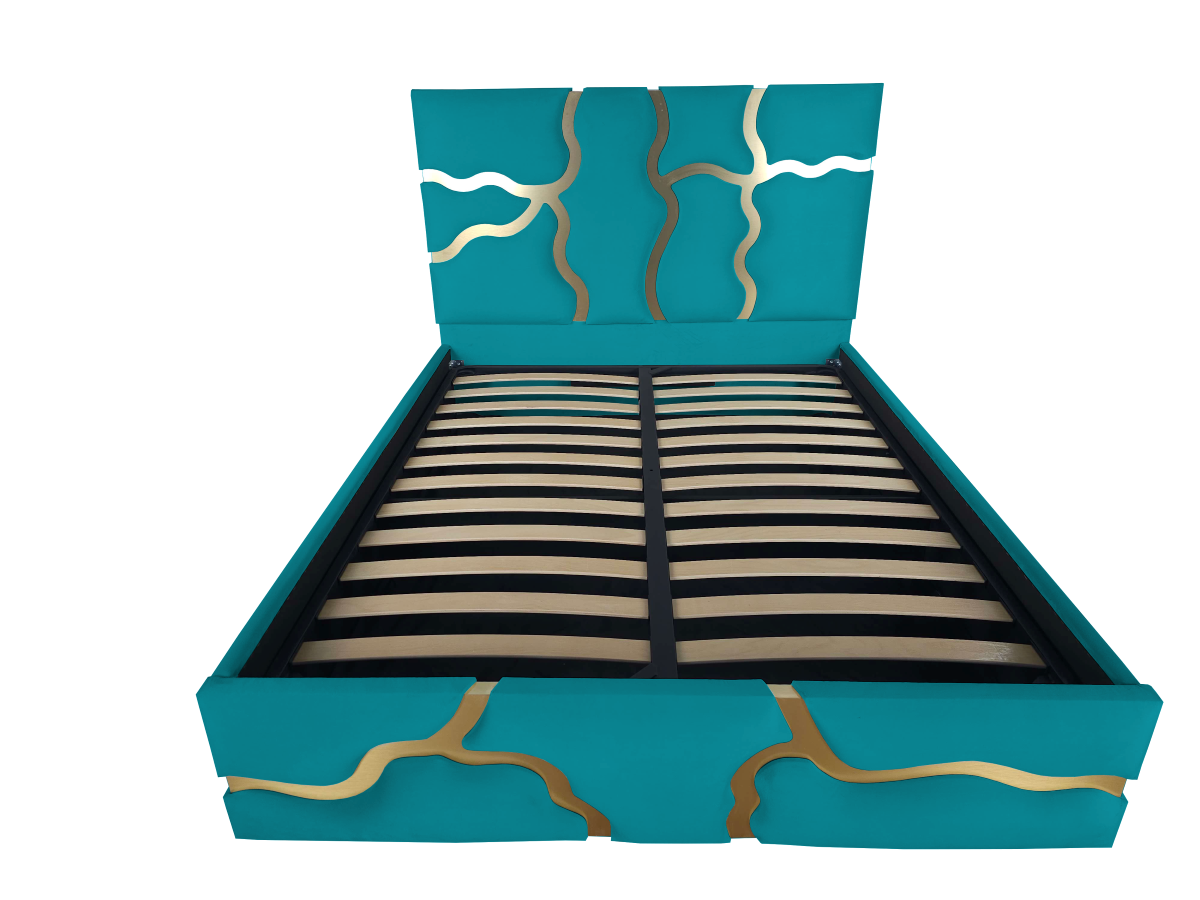 Patul Etna  este un pat tapitat ce incearca sa imite  urmele de lavă de culoare aurie. Este  o declarație de stil îndrăzneață și o piesă de mobilier care cu siguranță atrage atenția în orice cameră. Este o combinație de confort, funcționalitate și design artistic, care aduce un strop de aventură și mister în decorul casei dumneavoastră.Elementele  de culoare aurie sunt strălucitoare si  imită modul în care lava incandescentă strălucește în lumina soarelui.