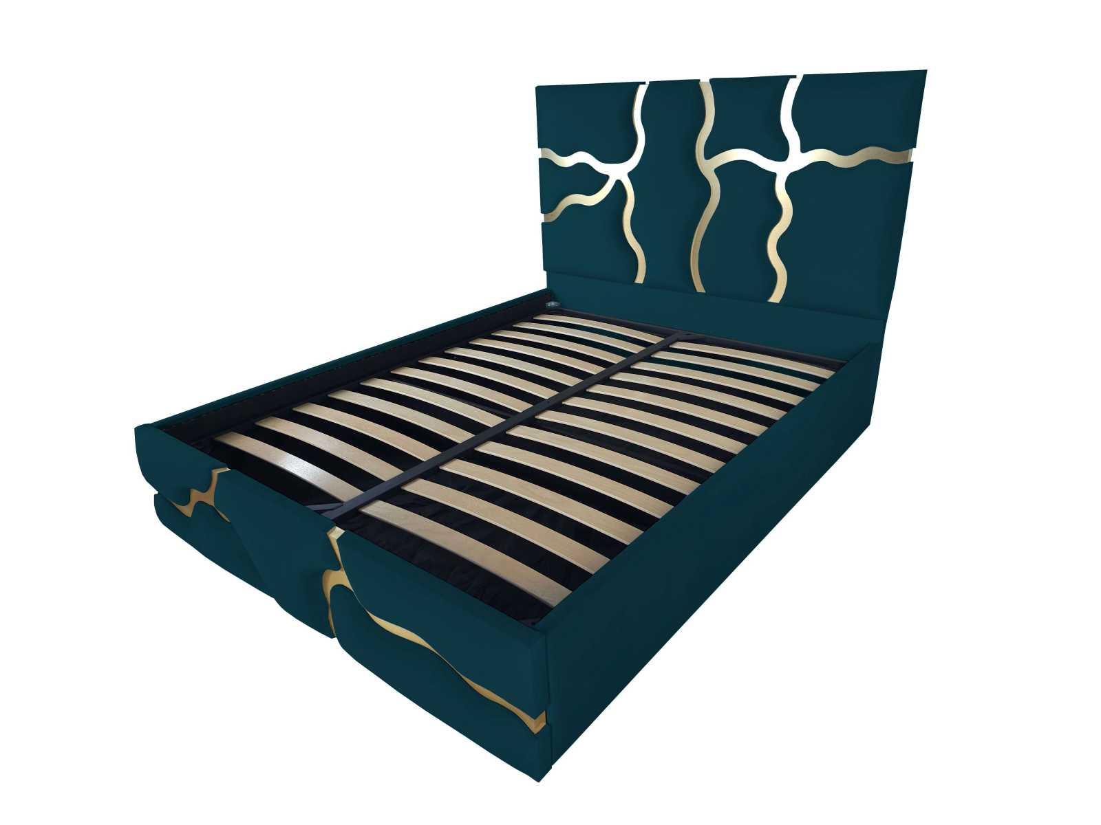 Patul Etna  este un pat tapitat ce incearca sa imite  urmele de lavă de culoare aurie. Este  o declarație de stil îndrăzneață și o piesă de mobilier care cu siguranță atrage atenția în orice cameră. Este o combinație de confort, funcționalitate și design artistic, care aduce un strop de aventură și mister în decorul casei dumneavoastră.Elementele  de culoare aurie sunt strălucitoare si  imită modul în care lava incandescentă strălucește în lumina soarelui.