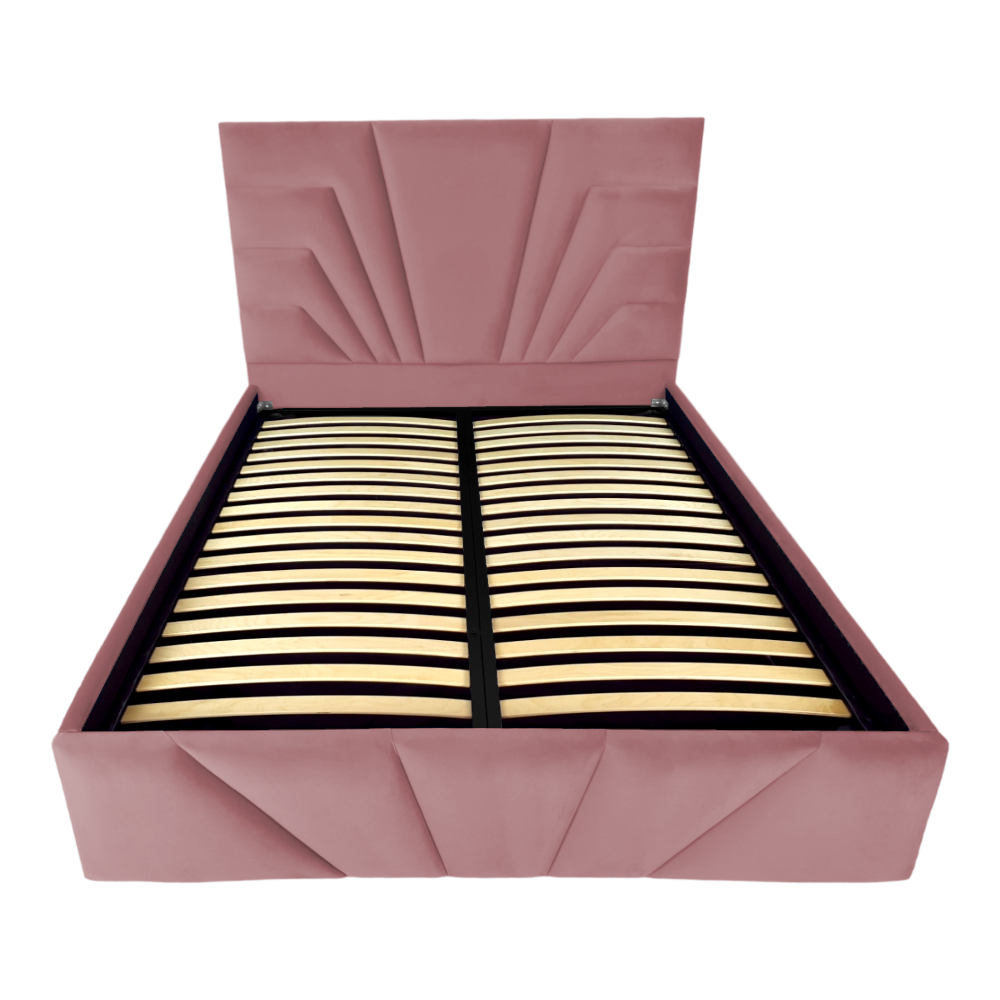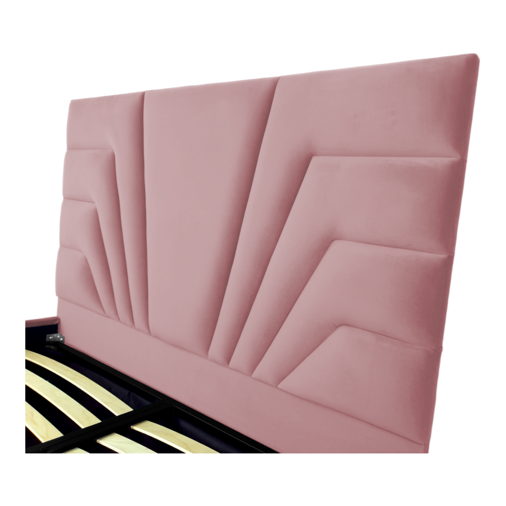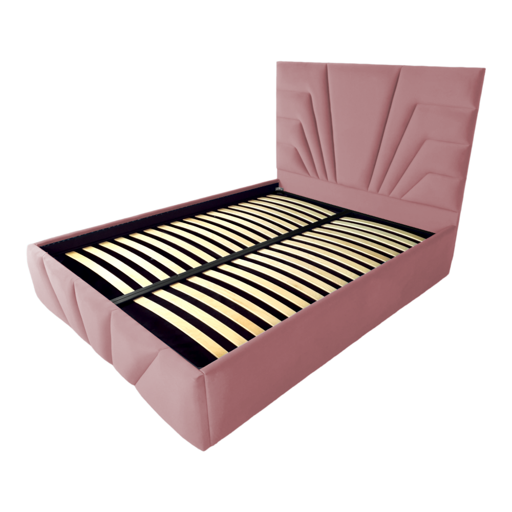 Pat tapitat Eva ,120x200cm,somiera metalica rabatabila,spatiu depozitare,roz