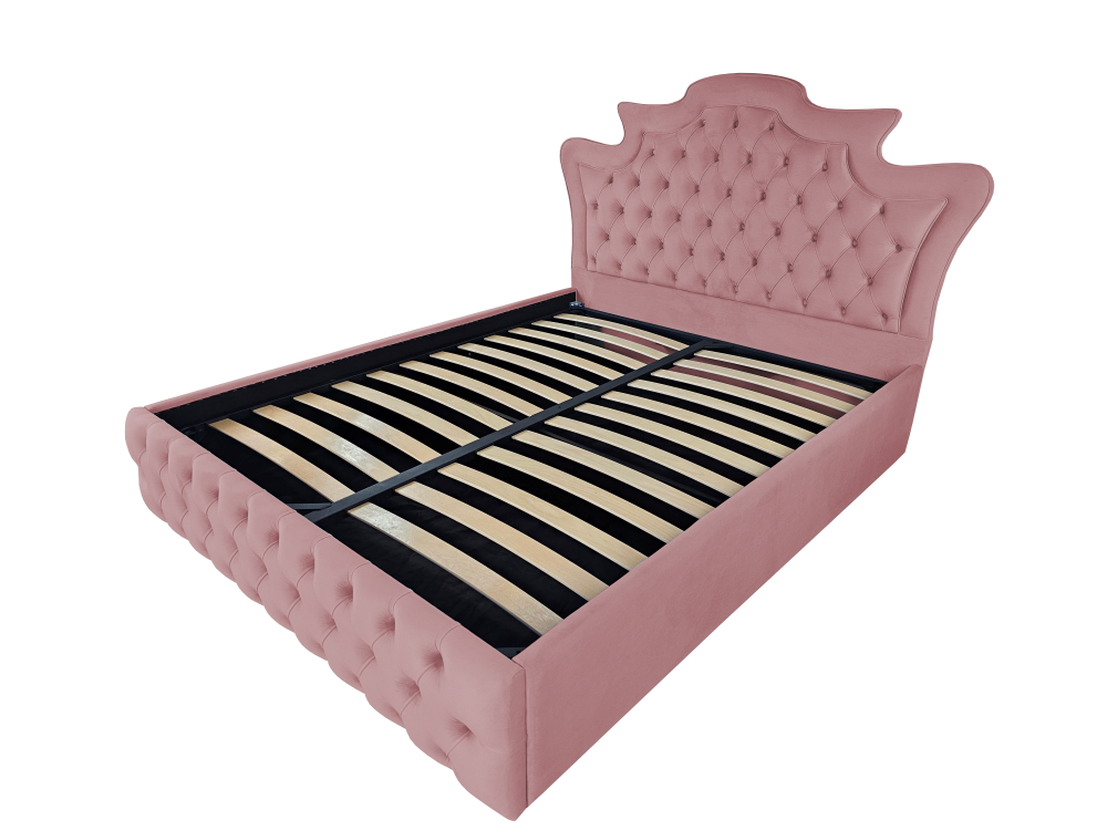 Pat tapitat Giulia ,120x200cm,somiera metalica rabatabila,spatiu depozitare,roz