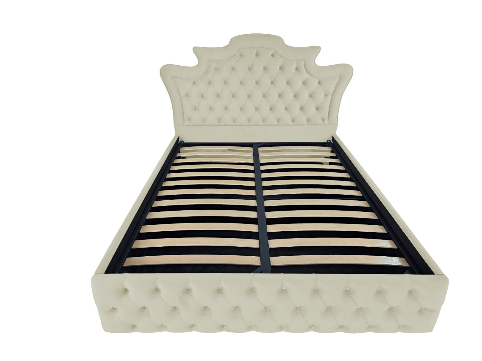 Pat tapitat Giulia ,120x200cm,somiera metalica rabatabila,spatiu depozitare,bej nisip