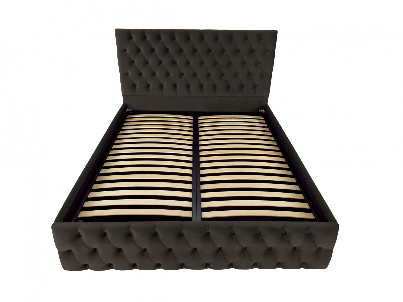 Pat tapitat Kirra ,120x200cm,somiera metalica rabatabila,spatiu depozitare,maro