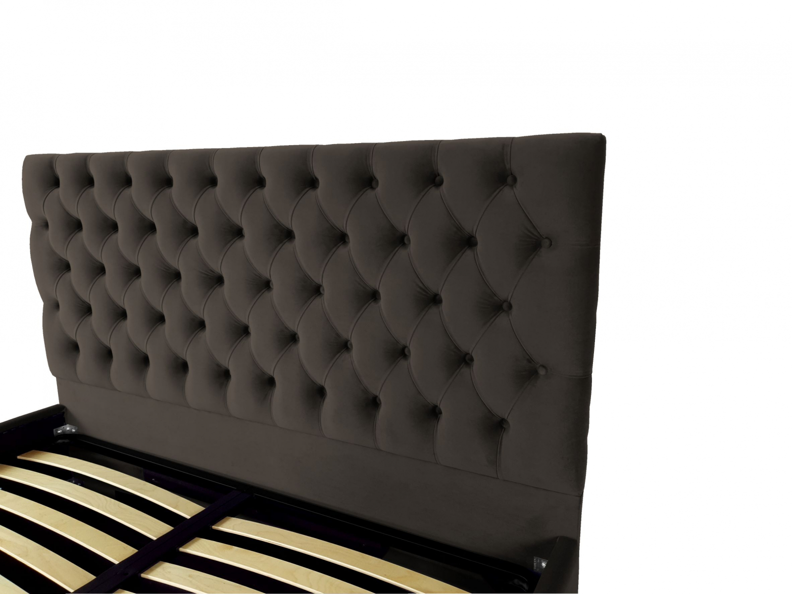 Pat tapitat Kirra -Produs in Romania. Veti fi captivat de aspectul sau unic și elegant. Rama patului este acoperita cu o tesatura moale catifelata. Un model de pat in stilul Chesterfield, tapitat in catifele moi si culori vibrante, perfect pentru un dormitor elegant. Ideal pentru saltele de 180x200 cm (saltea neinclusa). Este livrat cu somiera rabatabila cu spatiu pentru depozitare sub saltea.Se poate executa si pe alte culori.