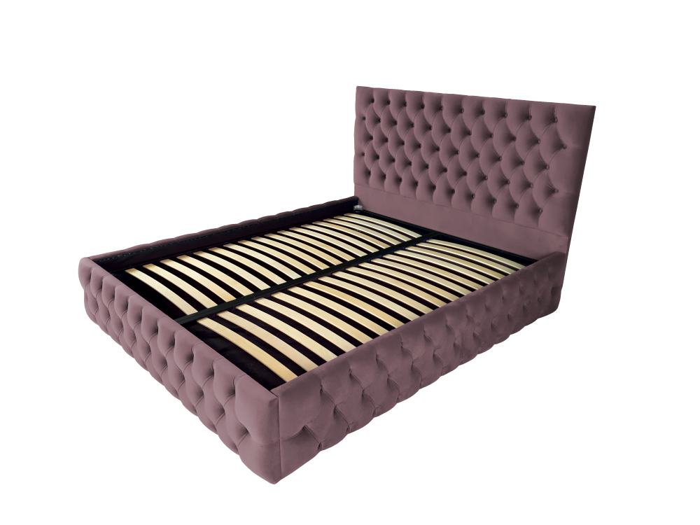 Veti fi captivat de aspectul sau unic și elegant. Rama patului este acoperita cu o tesatura moale catifelata. Un model de pat in stilul Chesterfield, tapitat in catifele moi si culori vibrante, perfect pentru un dormitor elegant. Ideal pentru saltele de 120x200 cm (saltea neinclusa). Este livrat cu somiera rabatabila cu spatiu pentru depozitare sub saltea.