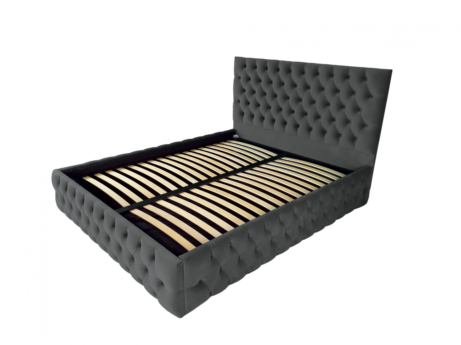 Veti fi captivat de aspectul sau unic și elegant. Rama patului este acoperita cu o tesatura moale catifelata. Un model de pat in stilul Chesterfield, tapitat in catifele moi si culori vibrante, perfect pentru un dormitor elegant. Ideal pentru saltele de 120x200 cm (saltea neinclusa). Este livrat cu somiera rabatabila cu spatiu pentru depozitare sub saltea.