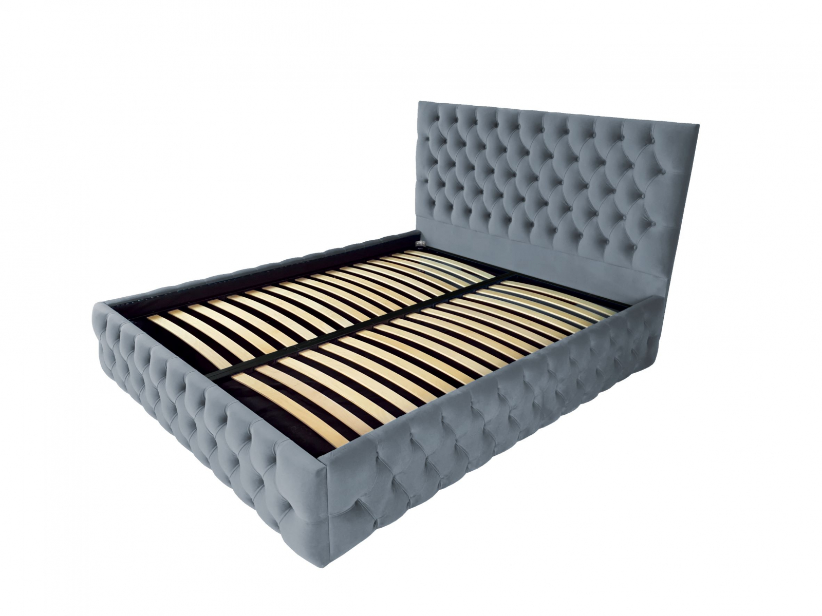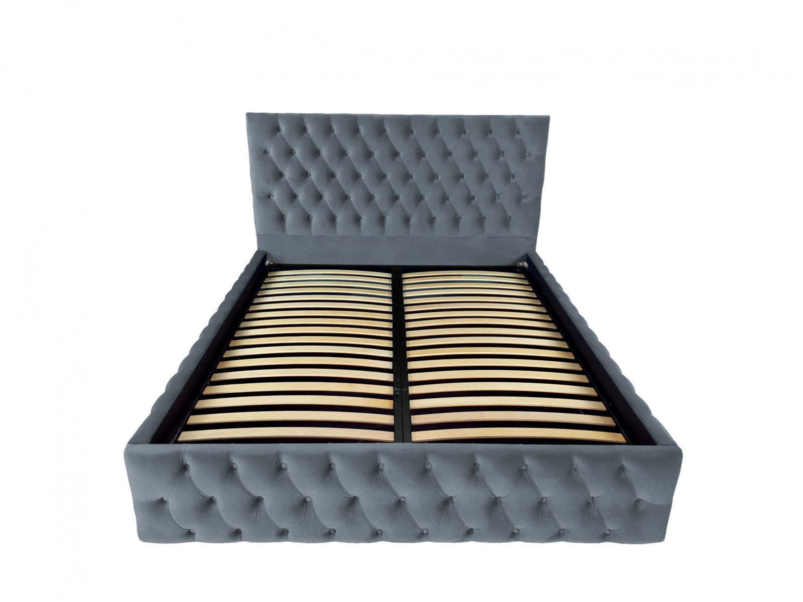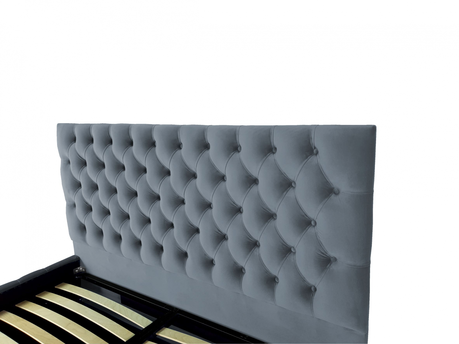 Veti fi captivat de aspectul sau unic și elegant. Rama patului este acoperita cu o tesatura moale catifelata. Un model de pat in stilul Chesterfield, tapitat in catifele moi si culori vibrante, perfect pentru un dormitor elegant. Ideal pentru saltele de 120x200 cm (saltea neinclusa). Este livrat cu somiera rabatabila cu spatiu pentru depozitare sub saltea.