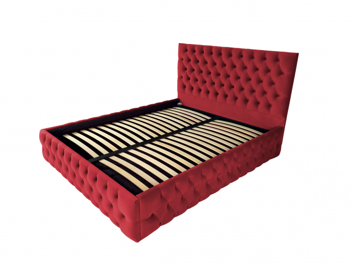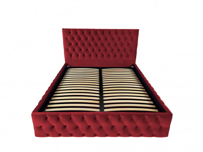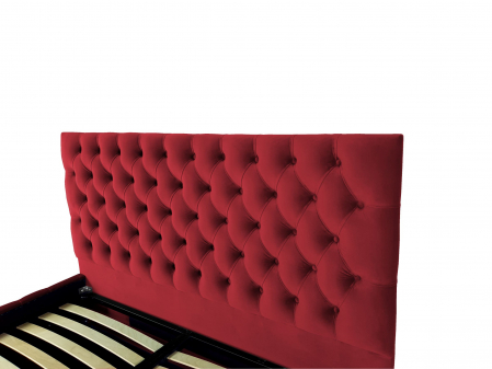 Veti fi captivat de aspectul sau unic și elegant. Rama patului este acoperita cu o tesatura moale catifelata. Un model de pat in stilul Chesterfield, tapitat in catifele moi si culori vibrante, perfect pentru un dormitor elegant. Ideal pentru saltele de 120x200 cm (saltea neinclusa). Este livrat cu somiera rabatabila cu spatiu pentru depozitare sub saltea.
