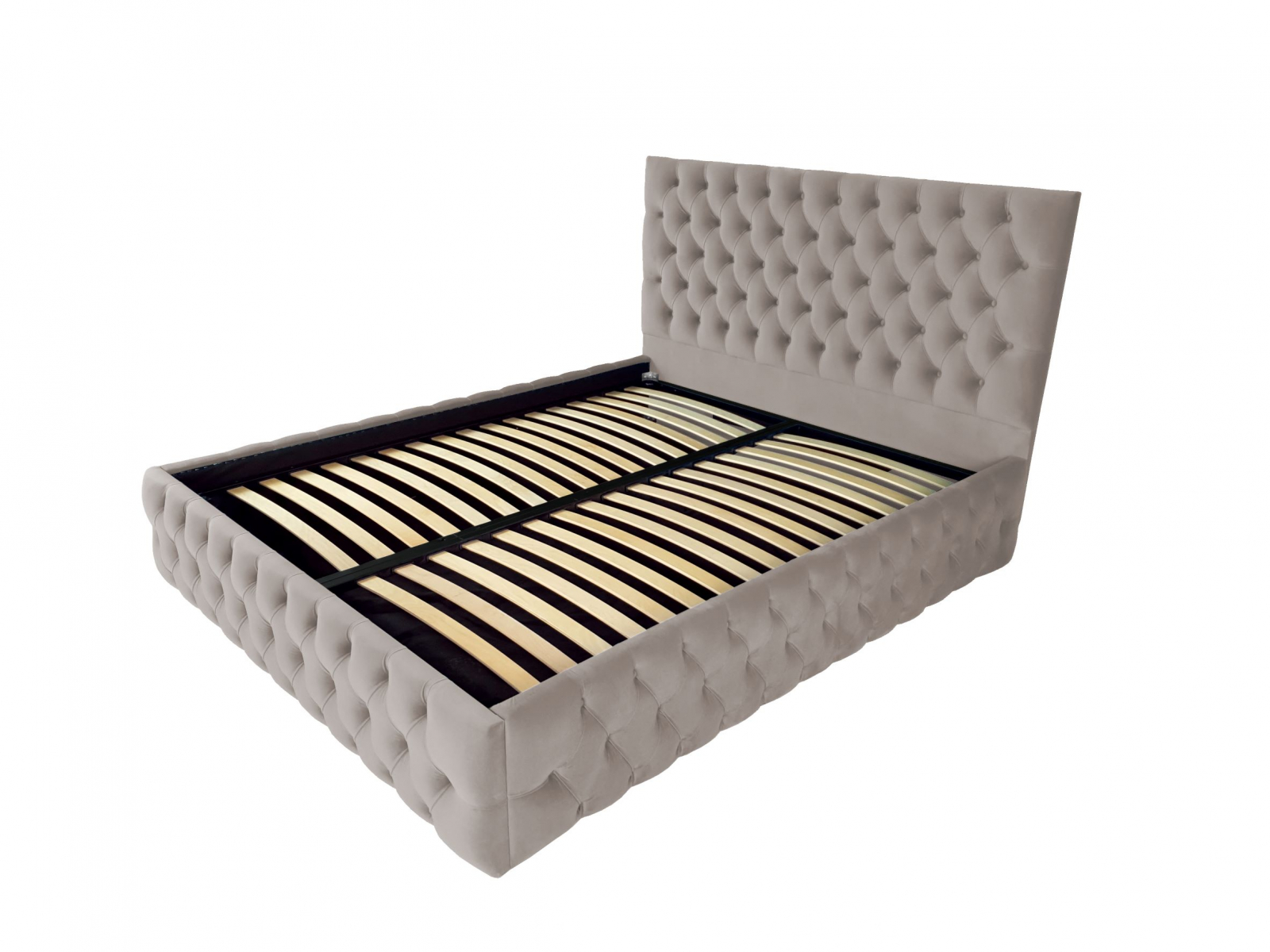 Veti fi captivat de aspectul sau unic și elegant. Rama patului este acoperita cu o tesatura moale catifelata. Un model de pat in stilul Chesterfield, tapitat in catifele moi si culori vibrante, perfect pentru un dormitor elegant. Ideal pentru saltele de 120x200 cm (saltea neinclusa). Este livrat cu somiera rabatabila cu spatiu pentru depozitare sub saltea.