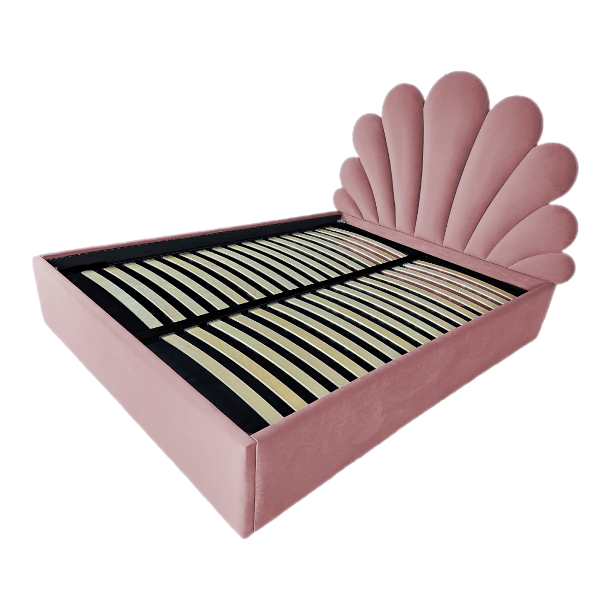 Pat tapitat Lotus ,120x200cm,somiera metalica rabatabila,spatiu depozitare,roz