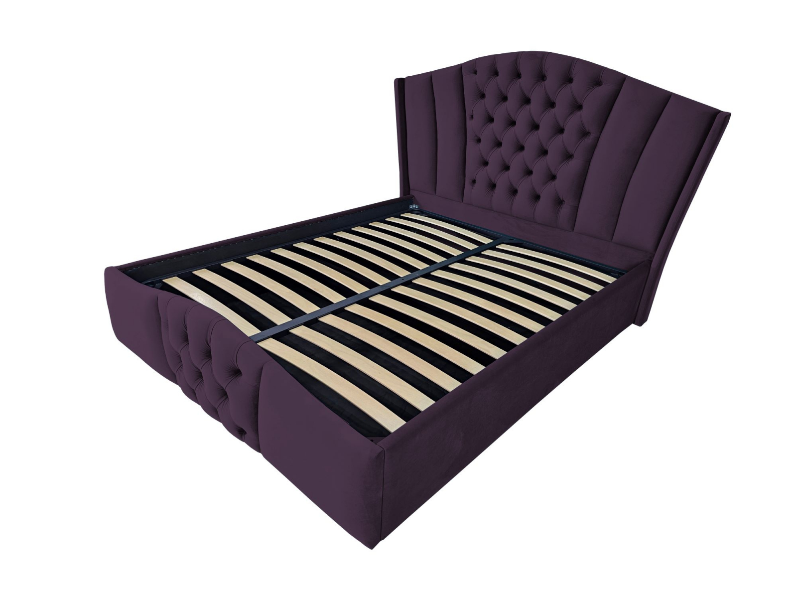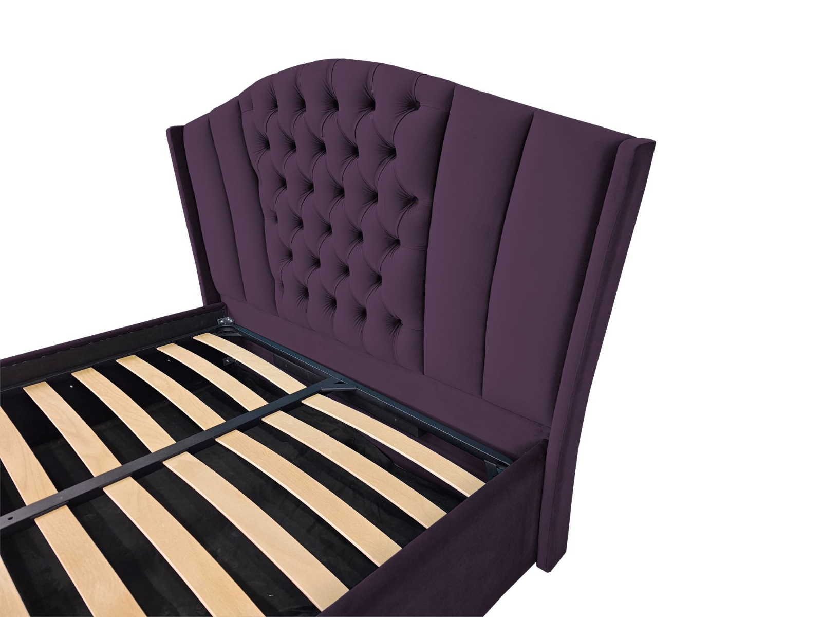 Pat tapitat Majestic ,120x200cm,somiera metalica rabatabila,spatiu depozitare,mov