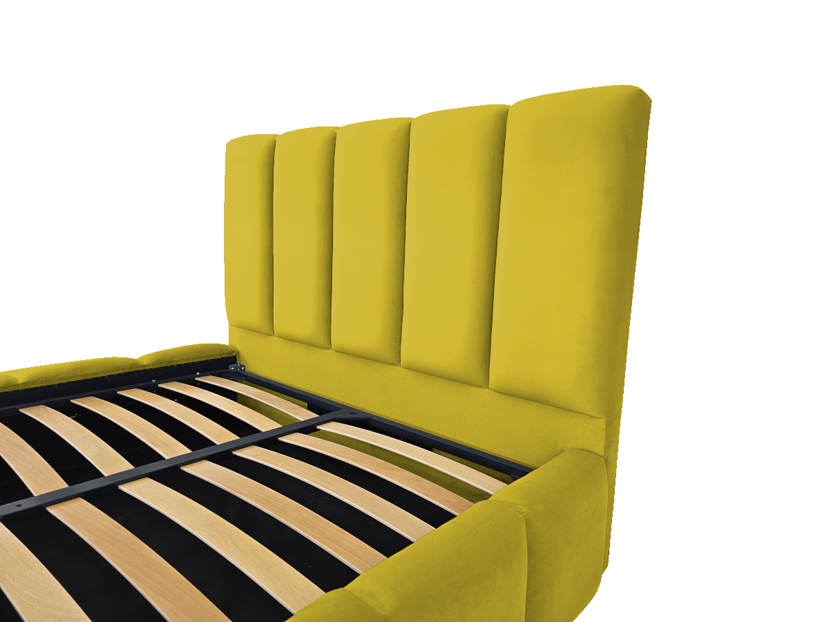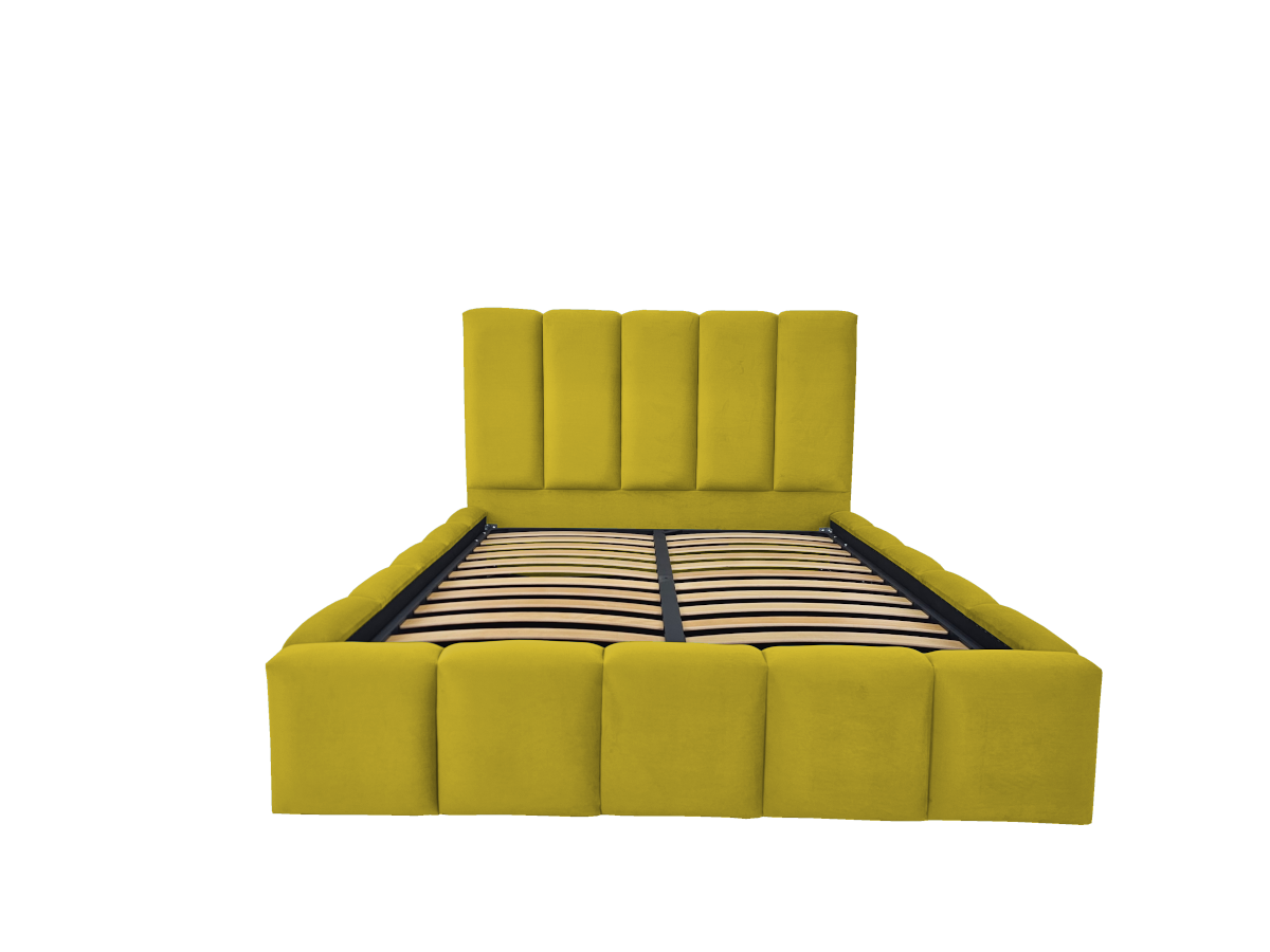 Pat tapitat Nexia ,140x200cm,somiera metalica rabatabila,spatiu depozitare,mustar