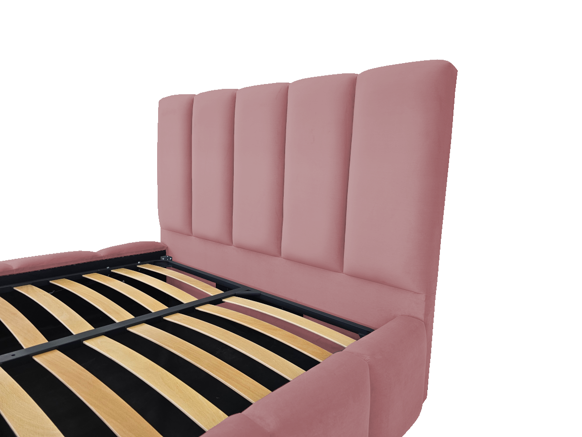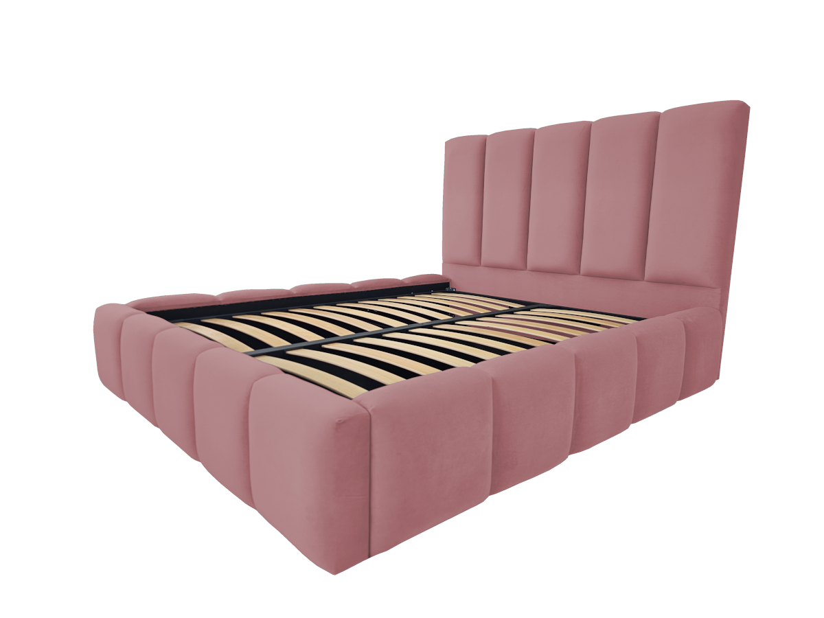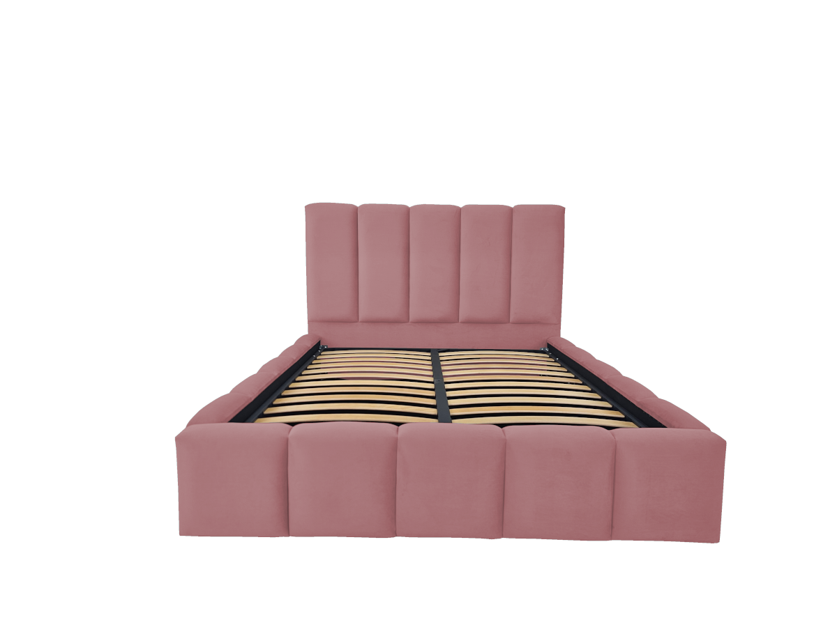Pat tapitat Nexia ,140x200cm,somiera metalica rabatabila,spatiu depozitare,roz