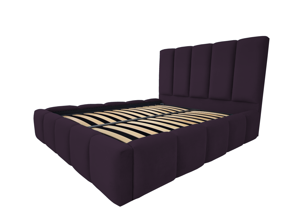Pat tapitat Nexia ,140x200cm,somiera metalica rabatabila,spatiu depozitare,mov