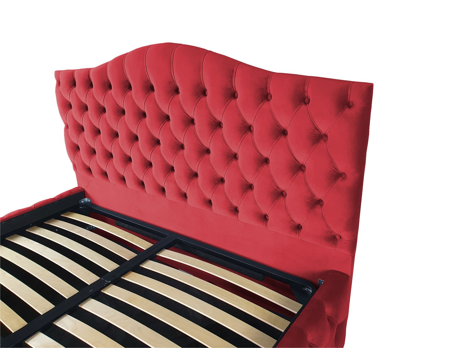 Veti fi captivat de aspectul sau unic și elegant. Rama patului este acoperita cu o tesatura moale catifelata. Un model de pat in stilul Chesterfield, tapitat in catifele moi si culori vibrante, perfect pentru un dormitor elegant. Este livrat cu somiera rabatabila cu spatiu pentru depozitare sub saltea.