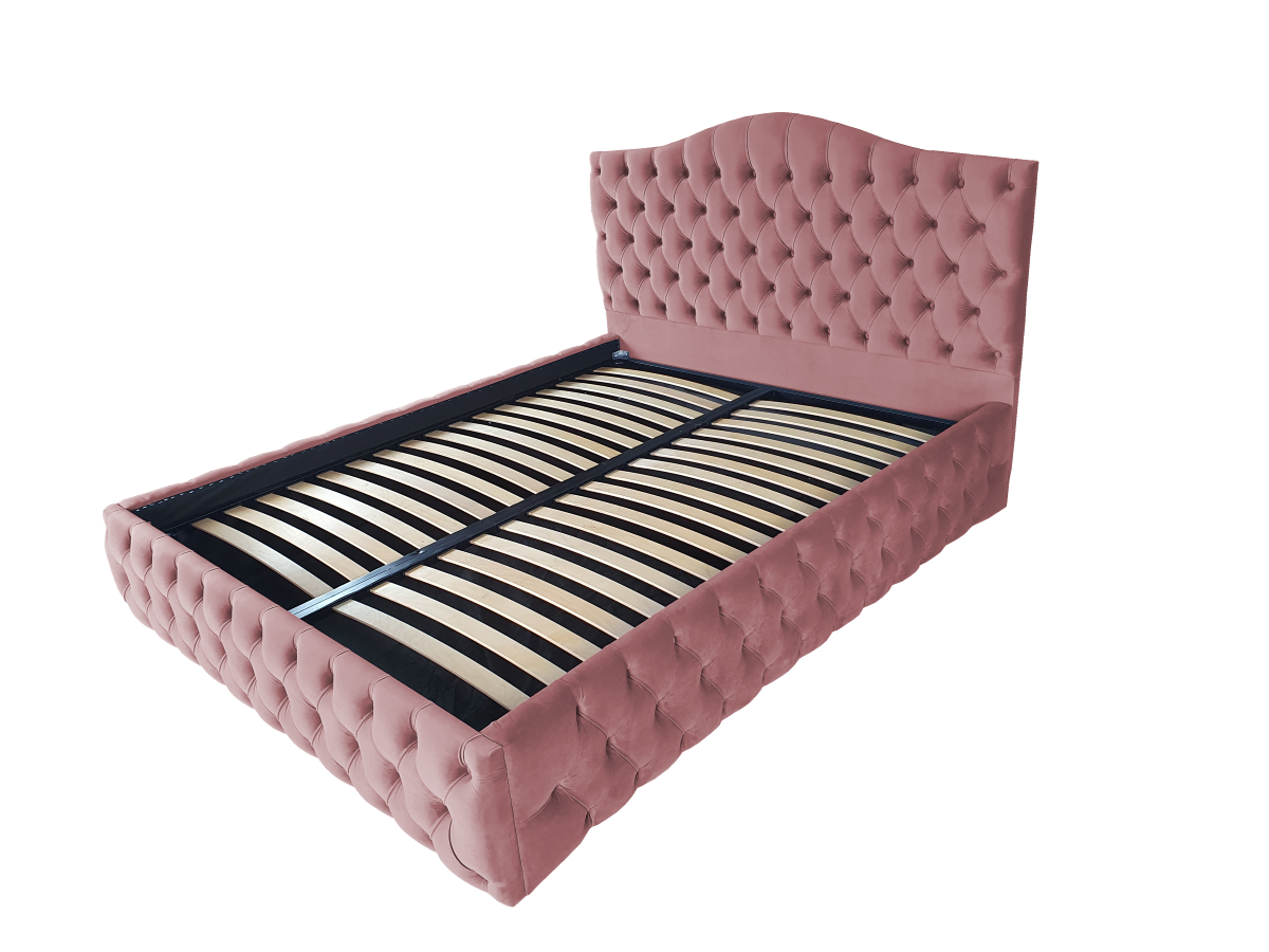 Veti fi captivat de aspectul sau unic și elegant. Rama patului este acoperita cu o tesatura moale catifelata. Un model de pat in stilul Chesterfield, tapitat in catifele moi si culori vibrante, perfect pentru un dormitor elegant. Este livrat cu somiera rabatabila cu spatiu pentru depozitare sub saltea.