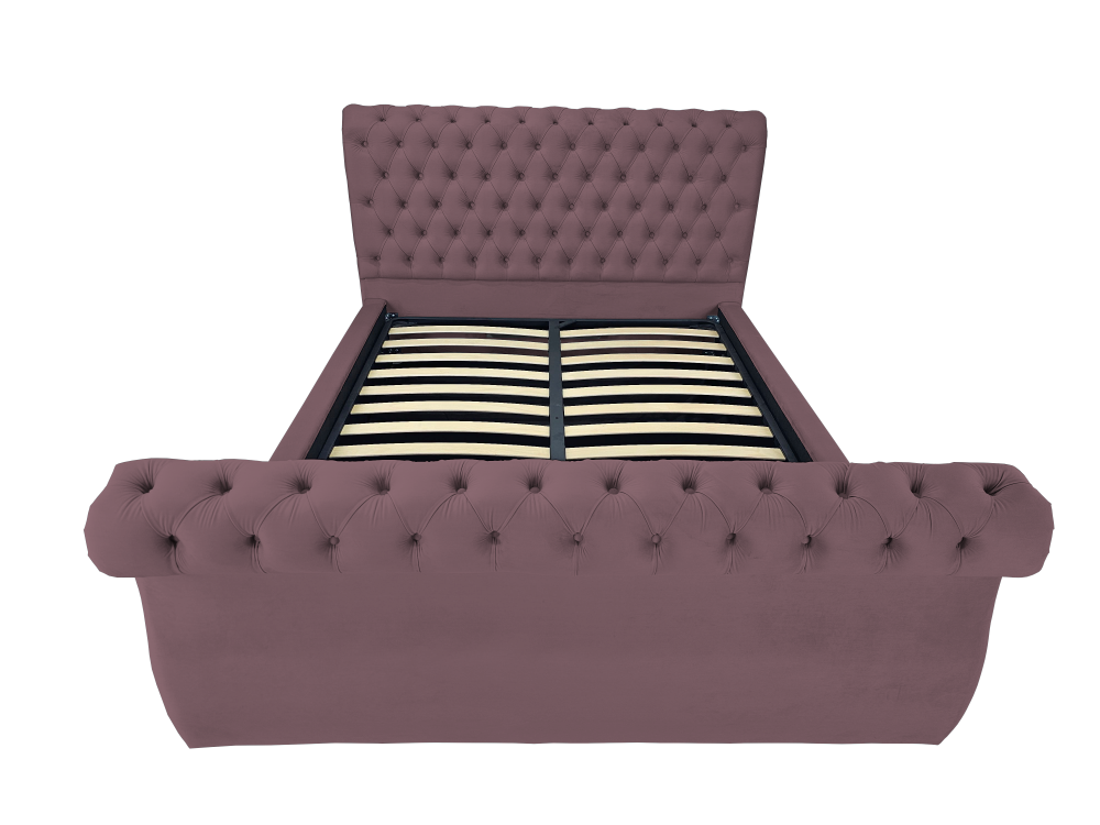 Pat tapitat Nobles ,120x200cm,somiera metalica rabatabila,spatiu depozitare,mov deschis