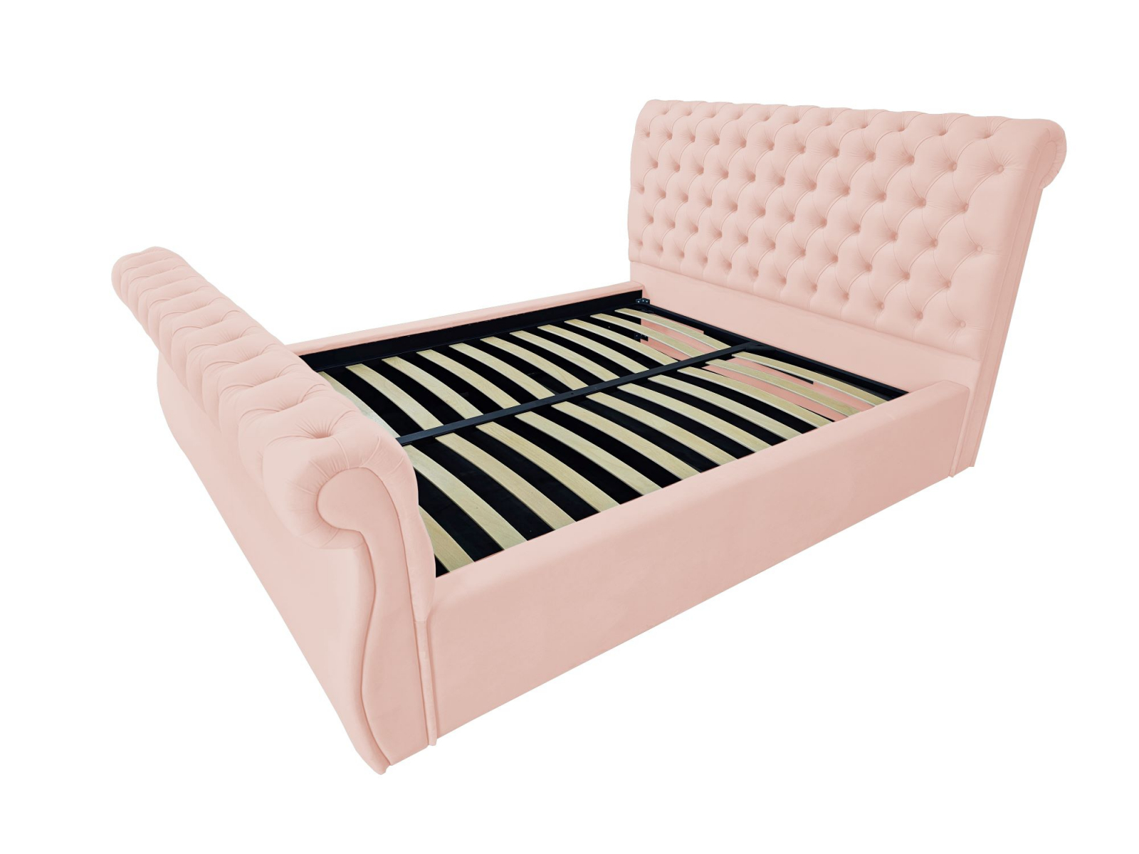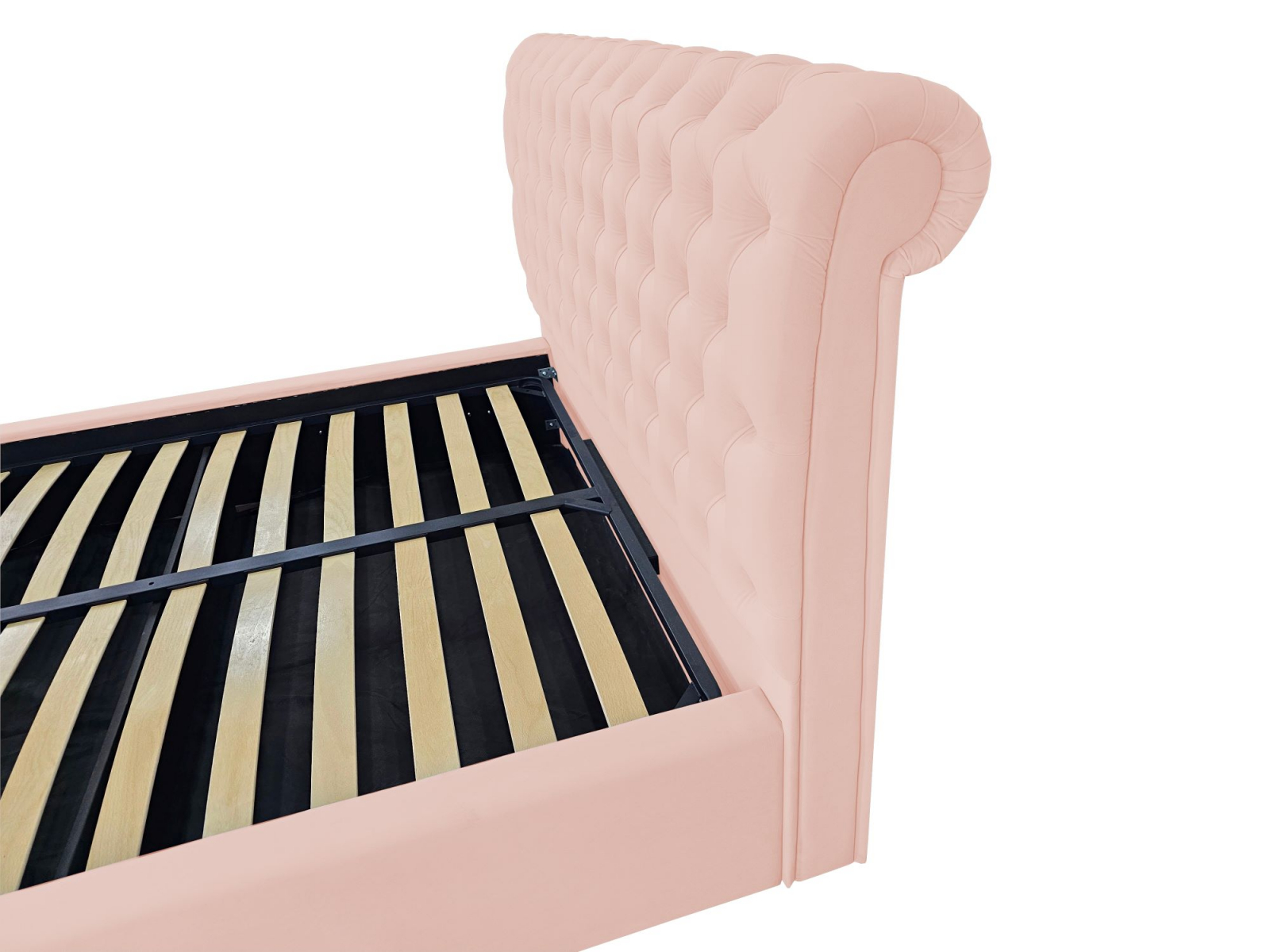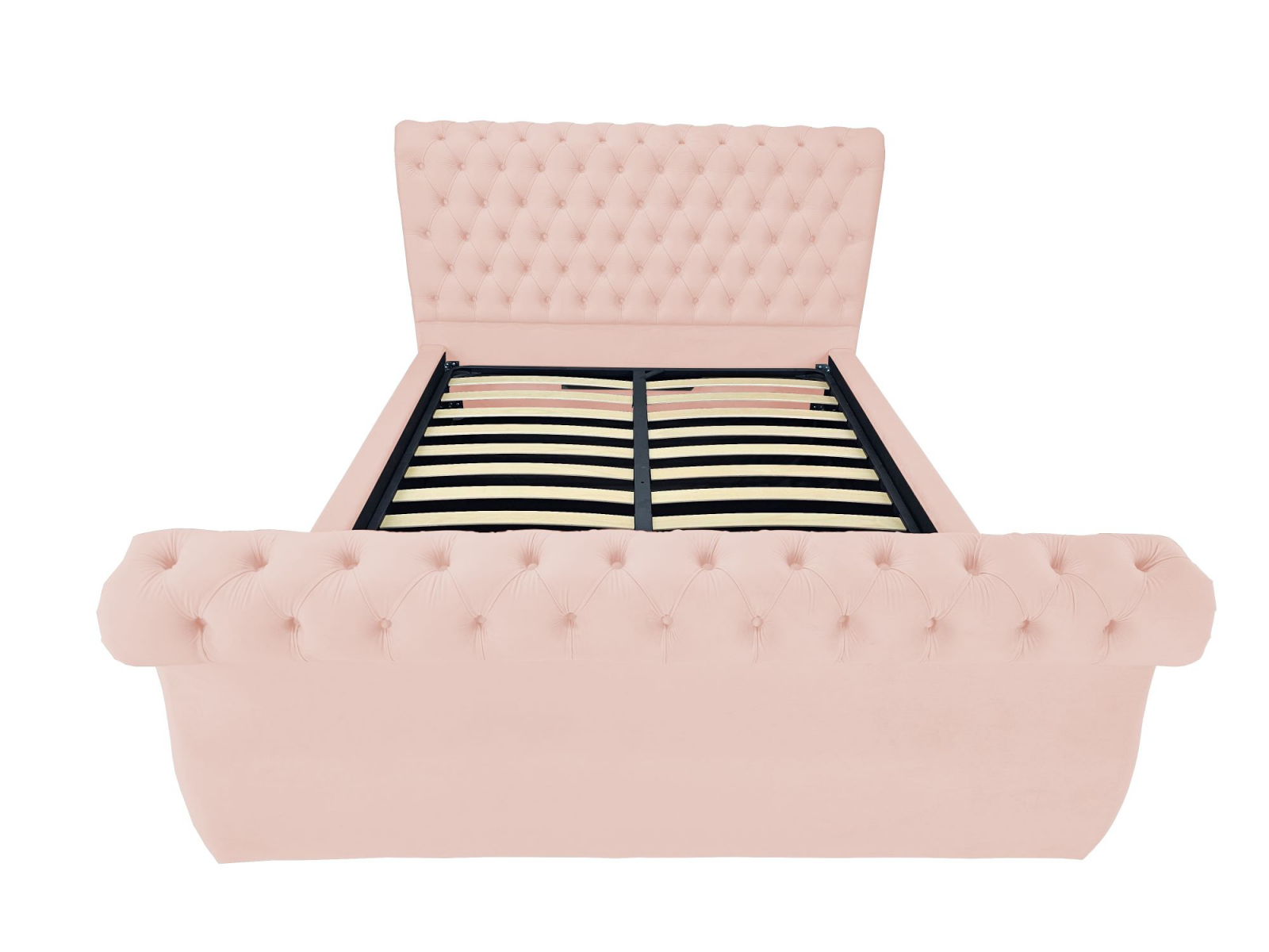 Pat tapitat Nobles ,120x200cm,somiera metalica rabatabila,spatiu depozitare,roz pal