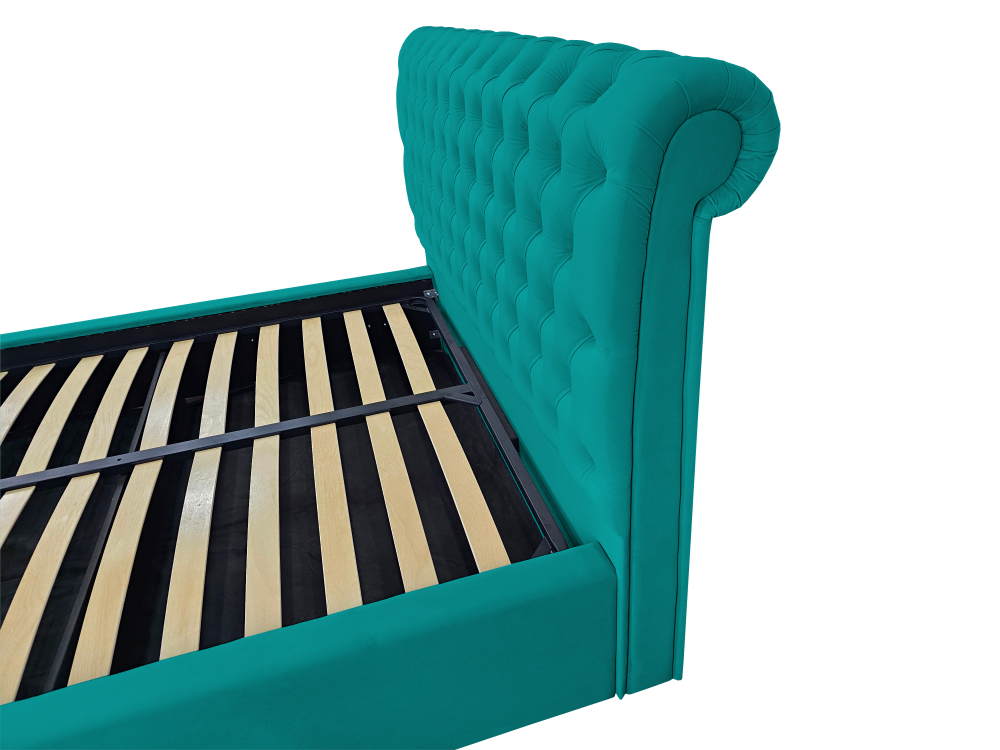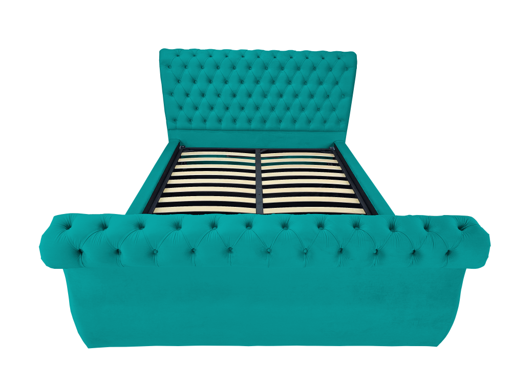 Pat tapitat Nobles ,120x200cm,somiera metalica rabatabila,spatiu depozitare,turcoaz