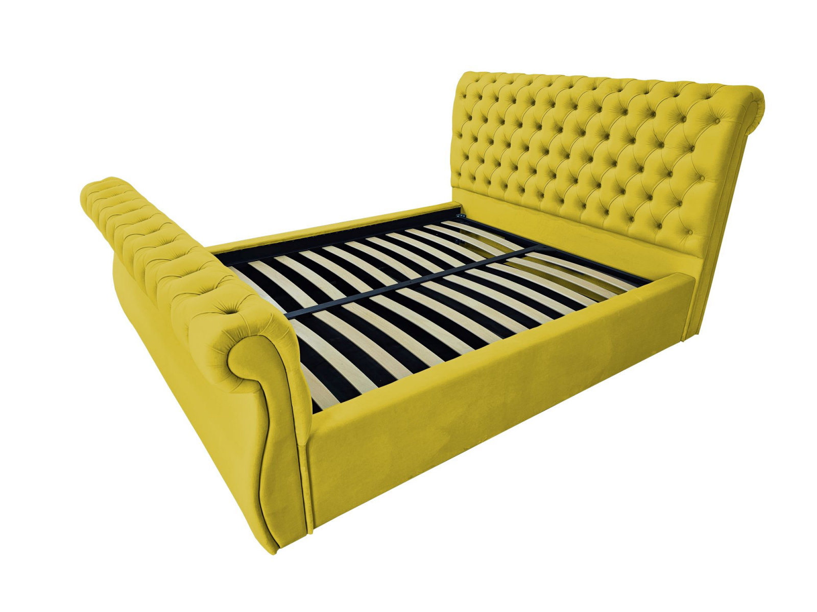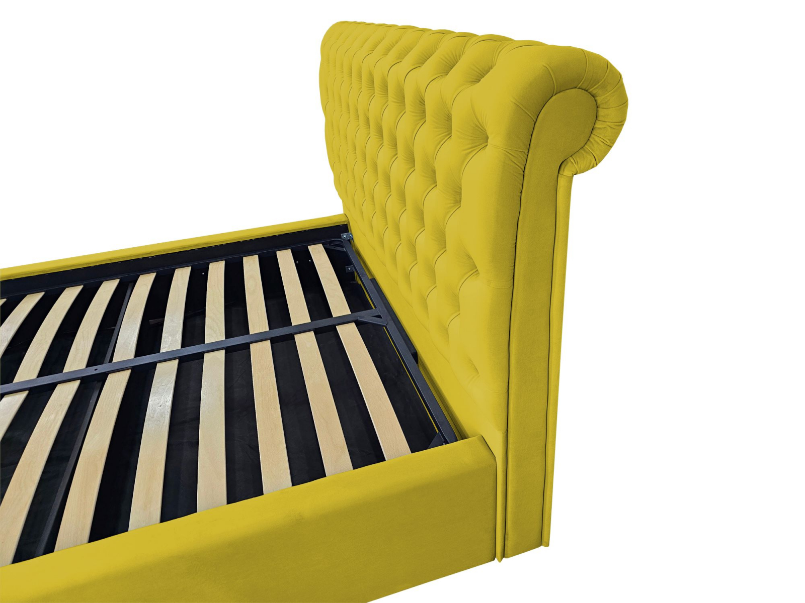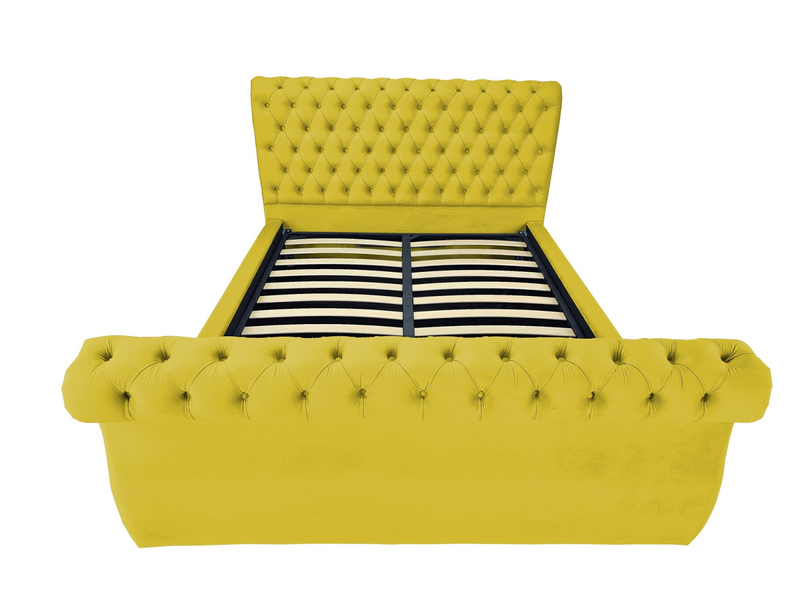 Pat tapitat Nobles ,120x200cm,somiera metalica rabatabila,spatiu depozitare,galben