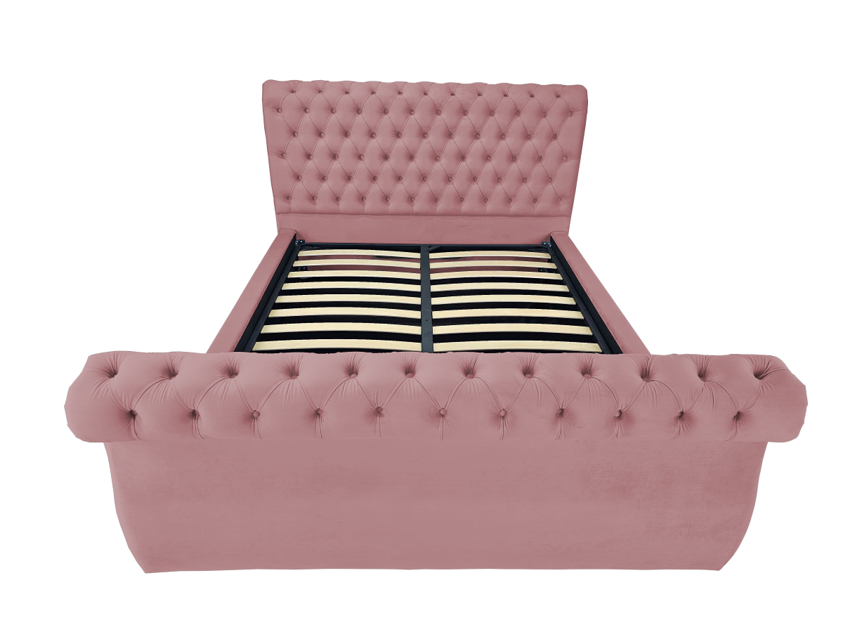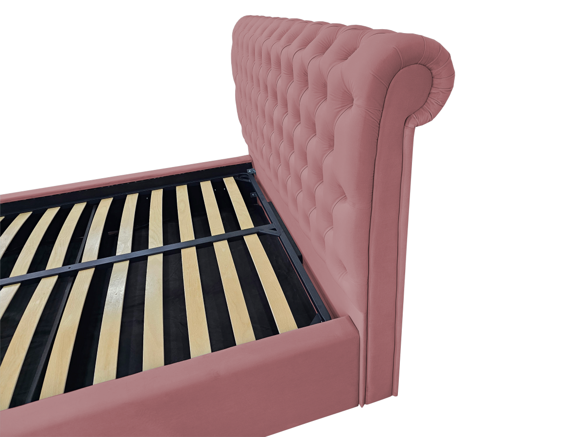 Pat tapitat Nobles ,120x200cm,somiera metalica rabatabila,spatiu depozitare,roz