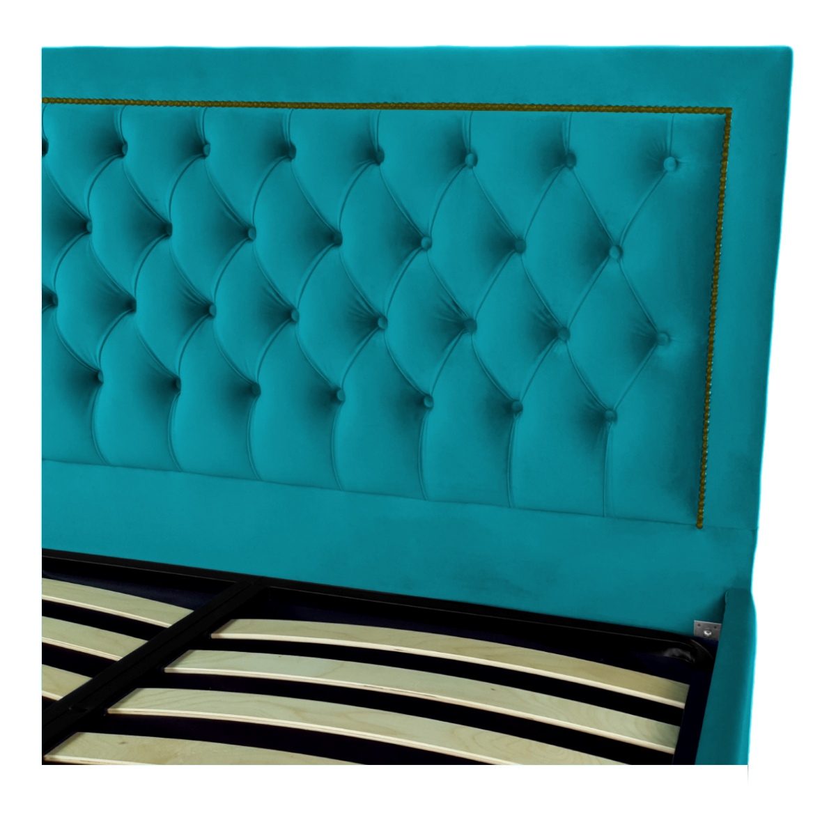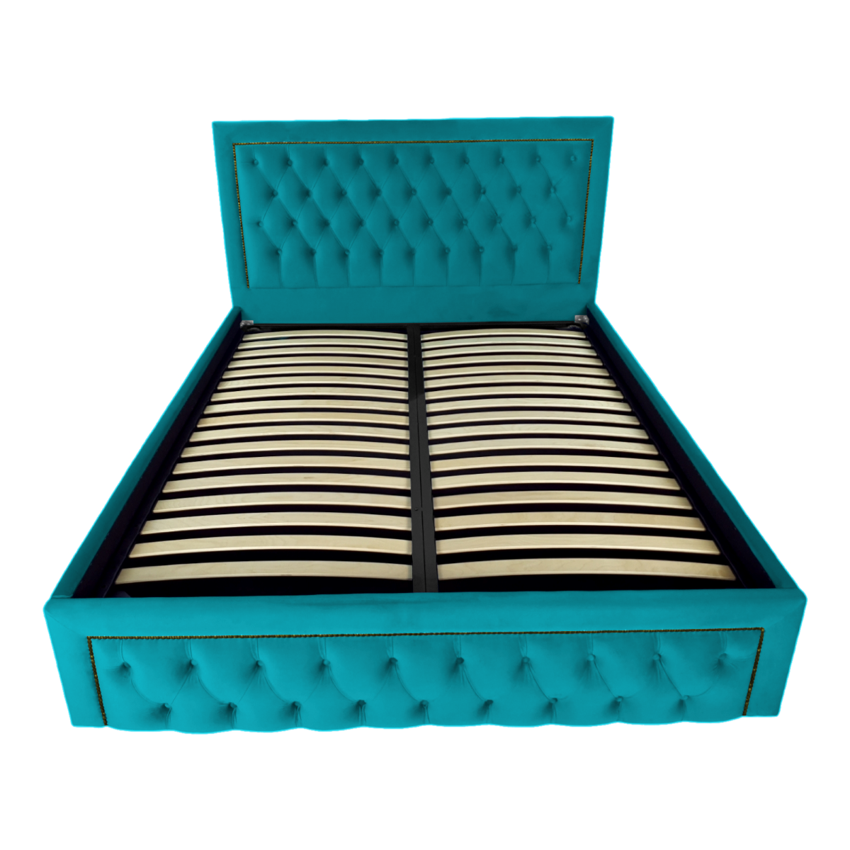 Pat tapitat Roma ,120x200cm,somiera metalica rabatabila,spatiu depozitare,albastru azur