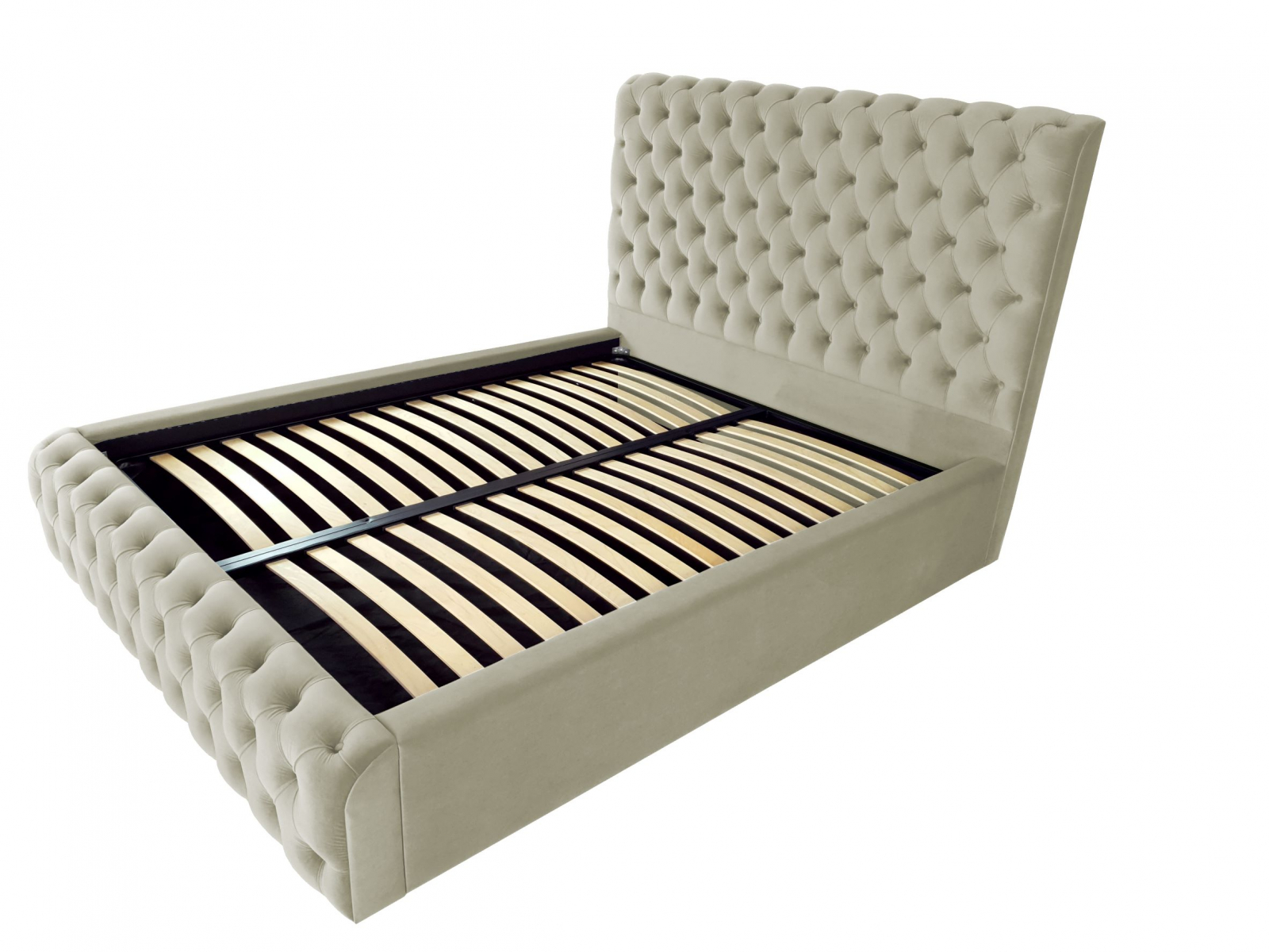 Pat tapitat Ruby ,120x200cm,somiera metalica rabatabila,spatiu depozitare,bej nisip