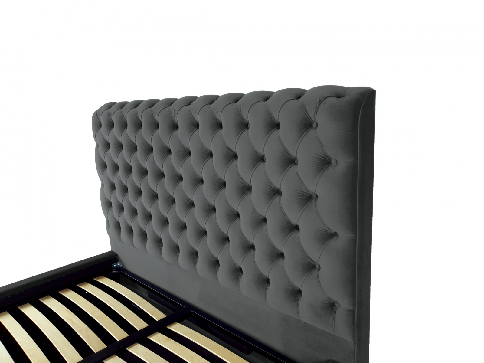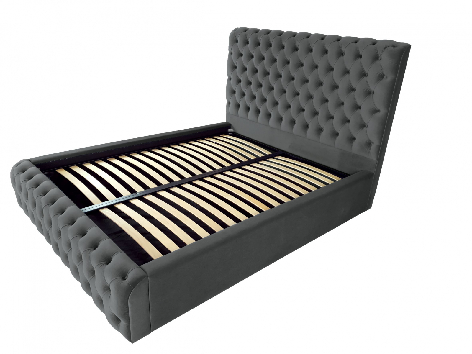 Pat tapitat Ruby ,120x200cm,somiera metalica rabatabila,spatiu depozitare,gri onix