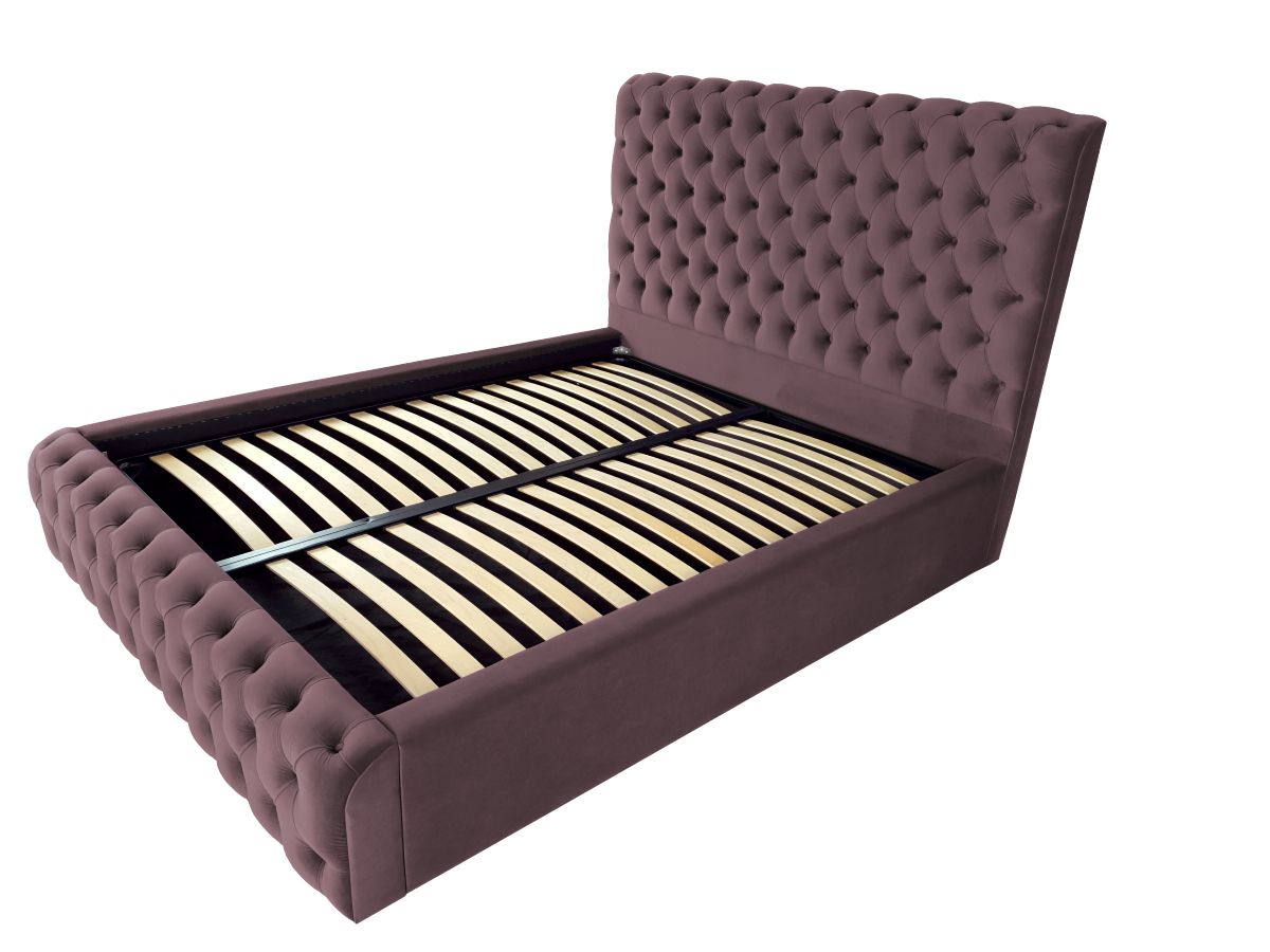 Pat tapitat Ruby ,120x200cm,somiera metalica rabatabila,spatiu depozitare,mov deschis