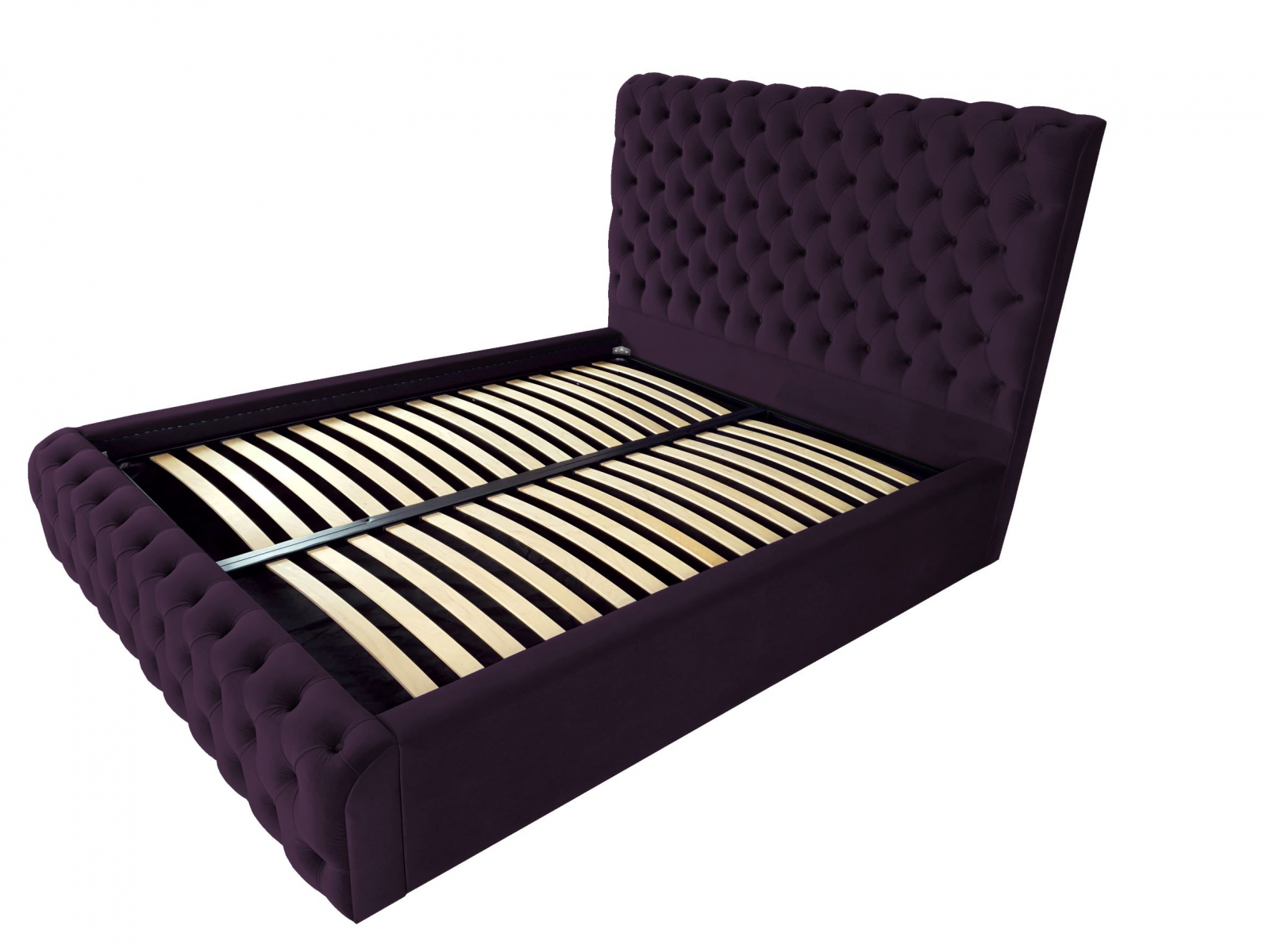 Pat tapitat Ruby ,120x200cm,somiera metalica rabatabila,spatiu depozitare,mov