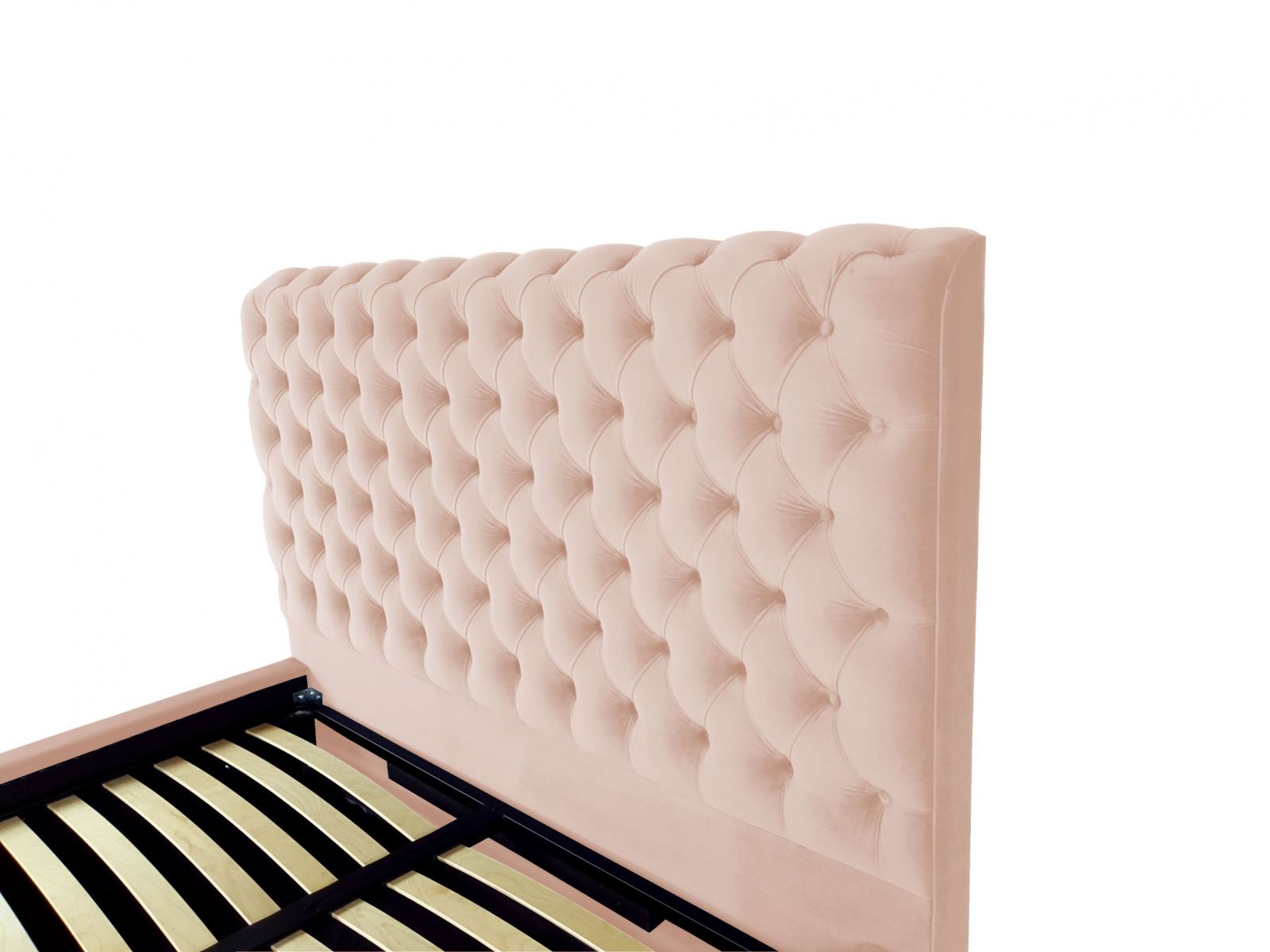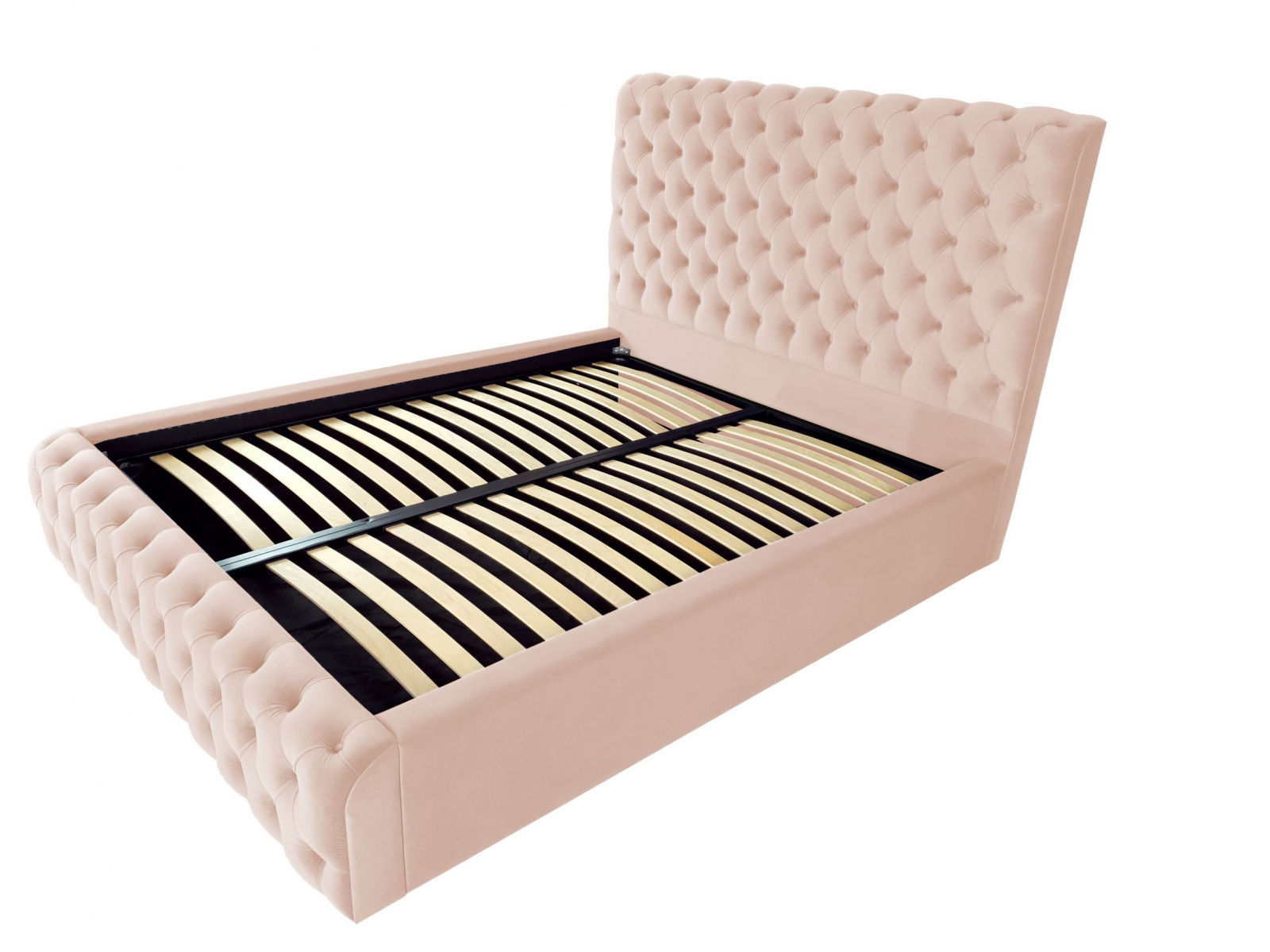 Pat tapitat Ruby ,120x200cm,somiera metalica rabatabila,spatiu depozitare,roz pal
