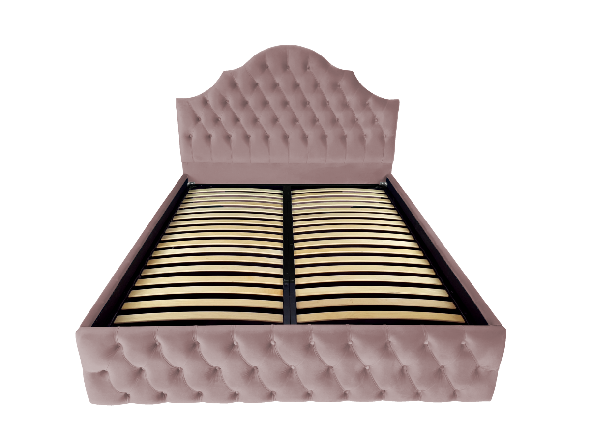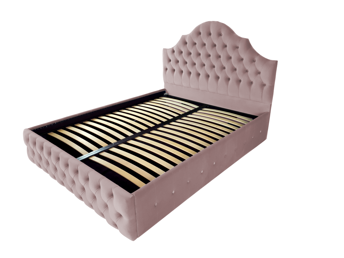 Pat tapitat Sophia ,120x200cm,somiera metalica rabatabila,spatiu depozitare,roz prafuit